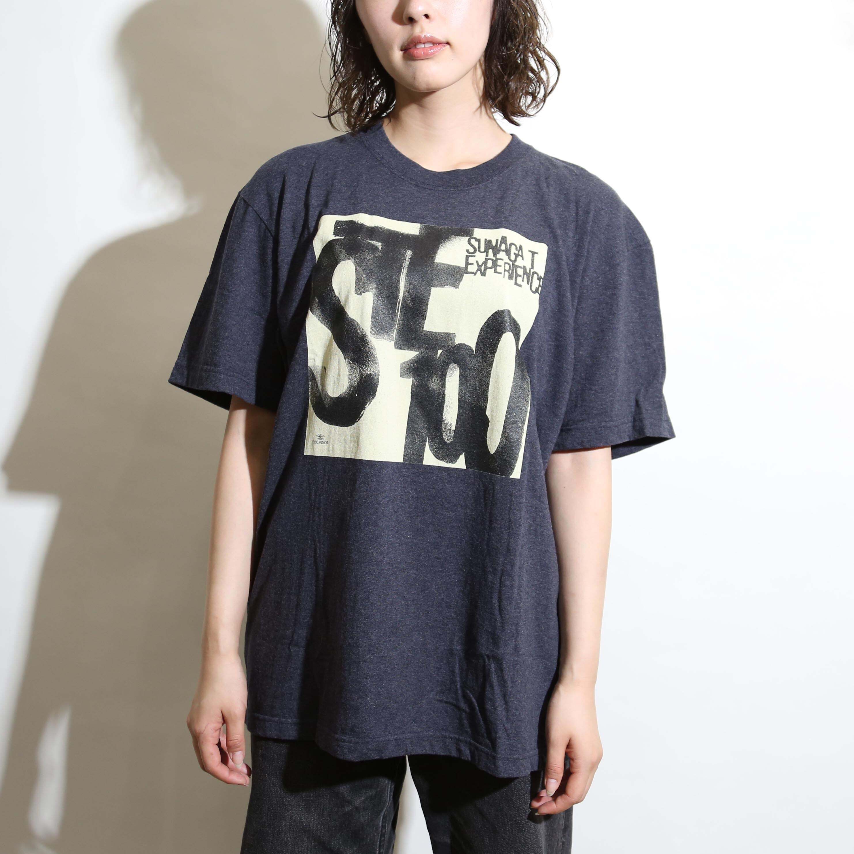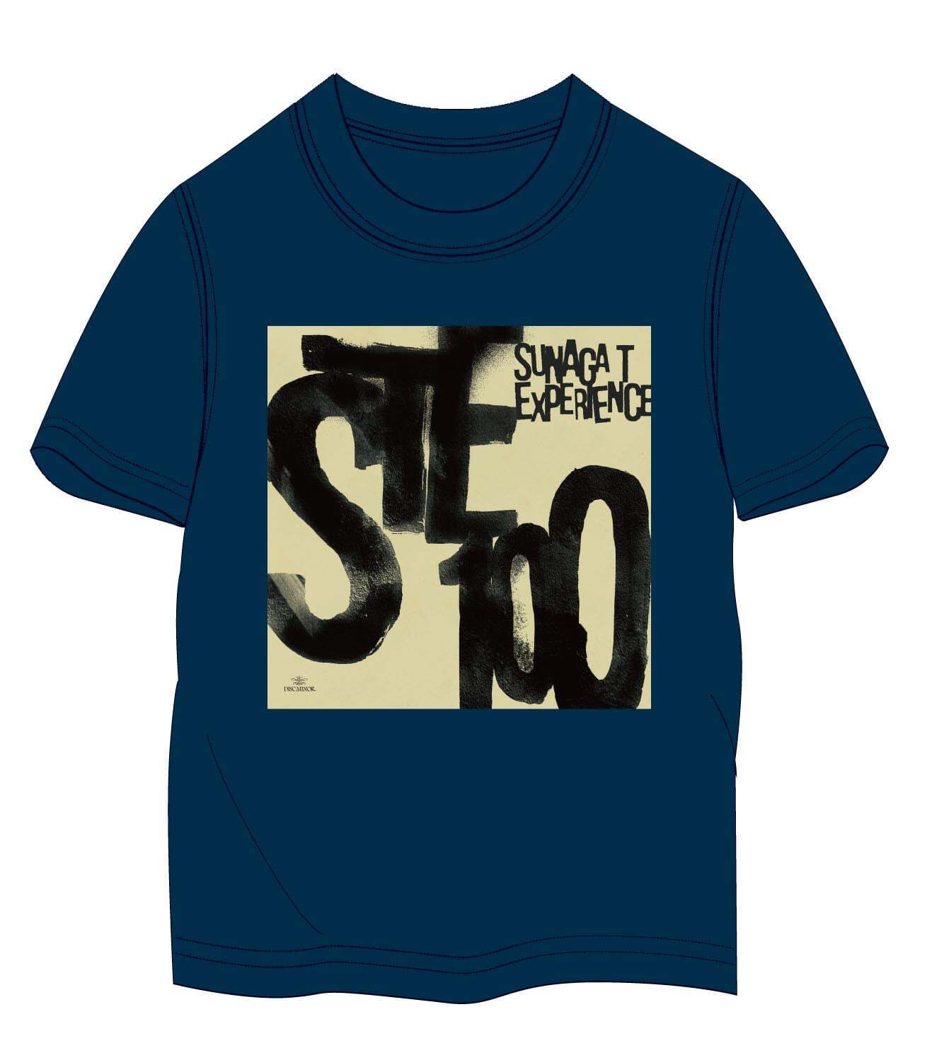 吉永祐介によるコルトレーンオマージュなSTE100 EPのジャケットデザインを表面に配置しました。プリントラバーインクの良い部分でもあるベタっとした風合いが今回のグラフィックの場合は、重くなりすぎると判断し着心地、デザイン性を考慮し着色抜染加工を採用しました。マニアックな加工ですが、テストを繰り返し細かい文字を綺麗に表現したかったので、結果4色印刷に構成しました。特注素材で肌触りも○