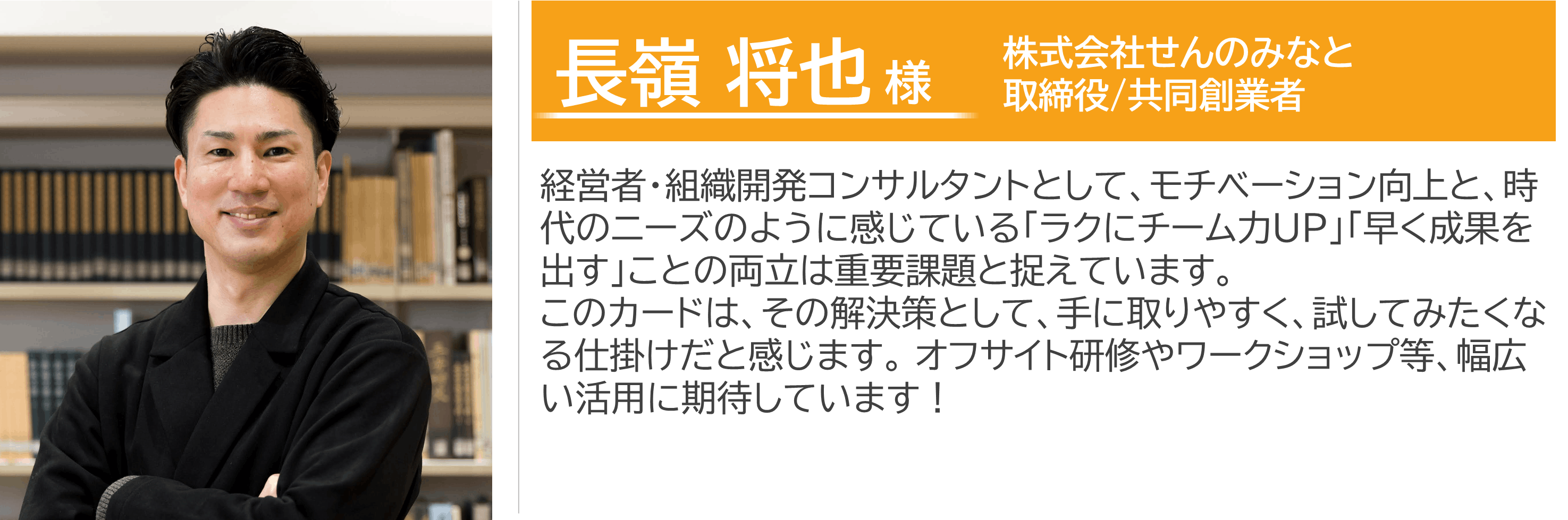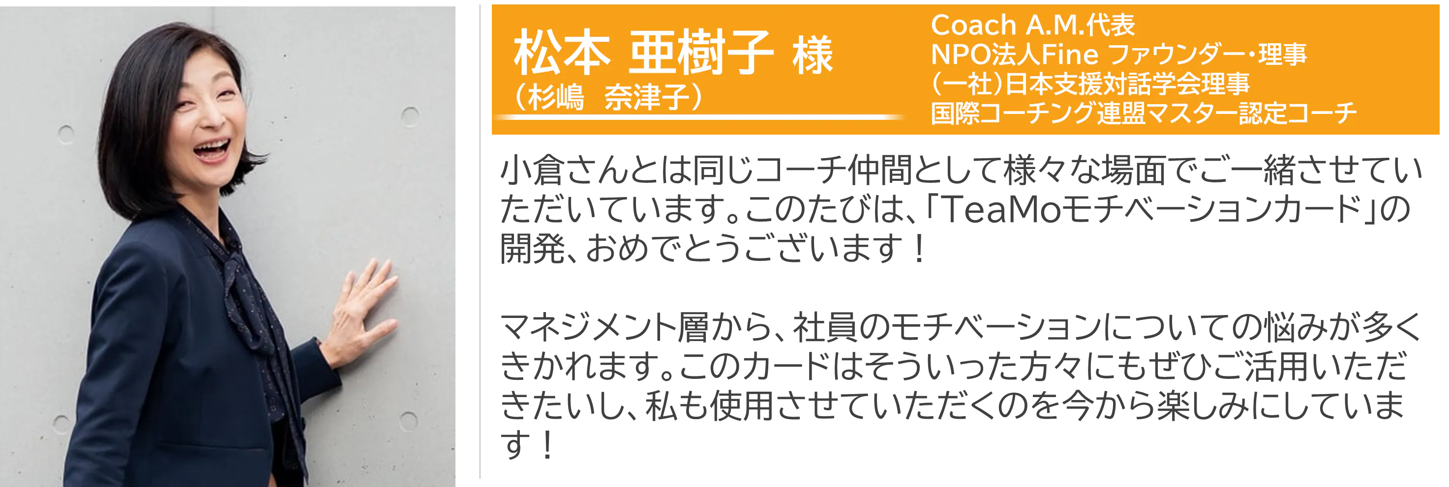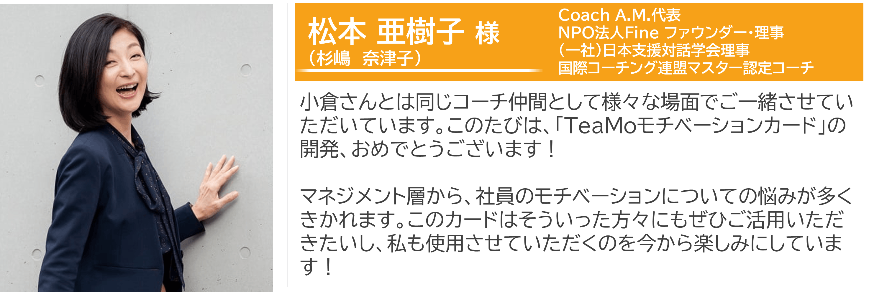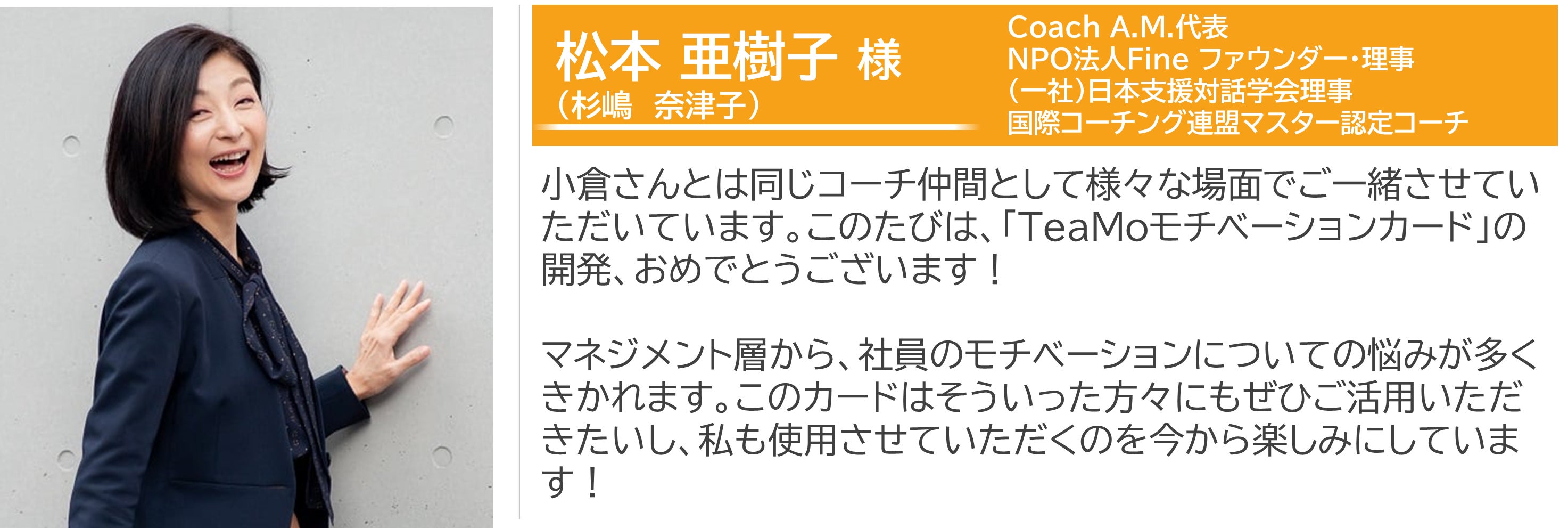 モチベーションやチーム作りに課題を持たれている全ての方々が「TeaMoモチベーションカード」を通じて、日々の生活や仕事に新たな活力と喜びが生まれることを心から願っています。