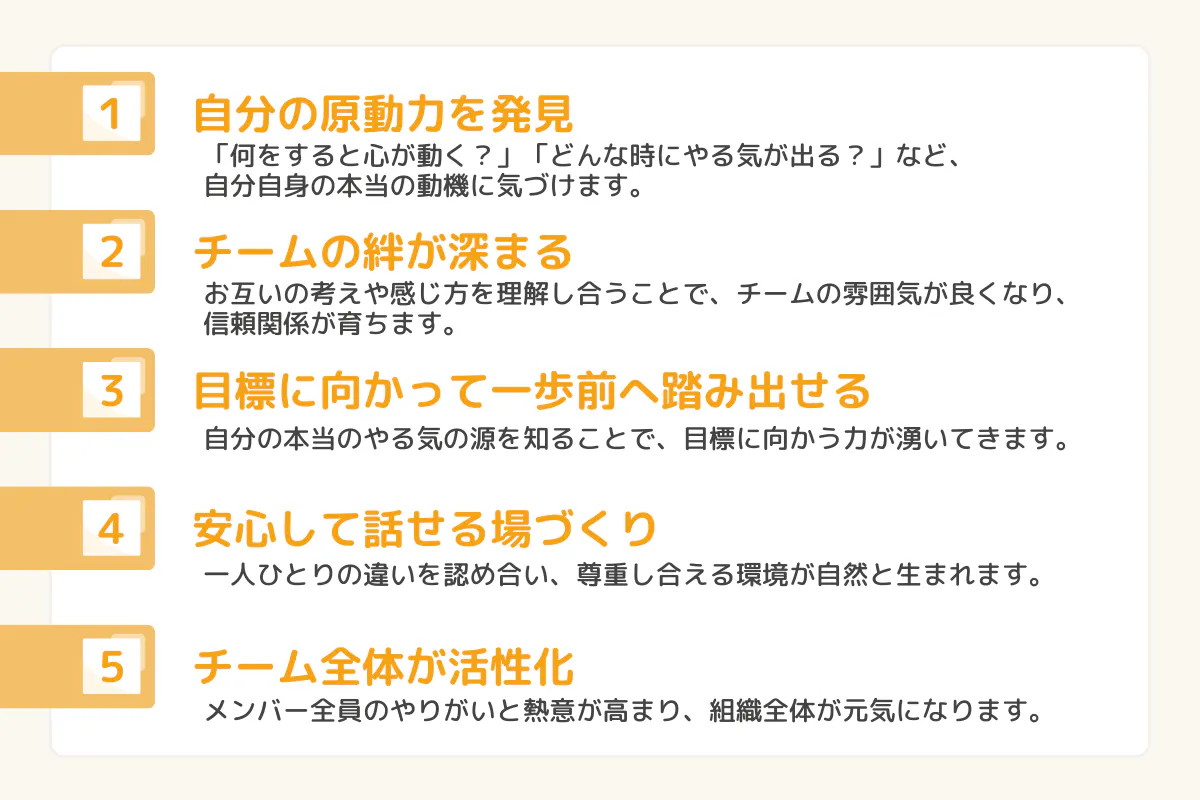 「TeaMoモチベーションカード」を通して、以下のような効果が期待できます。