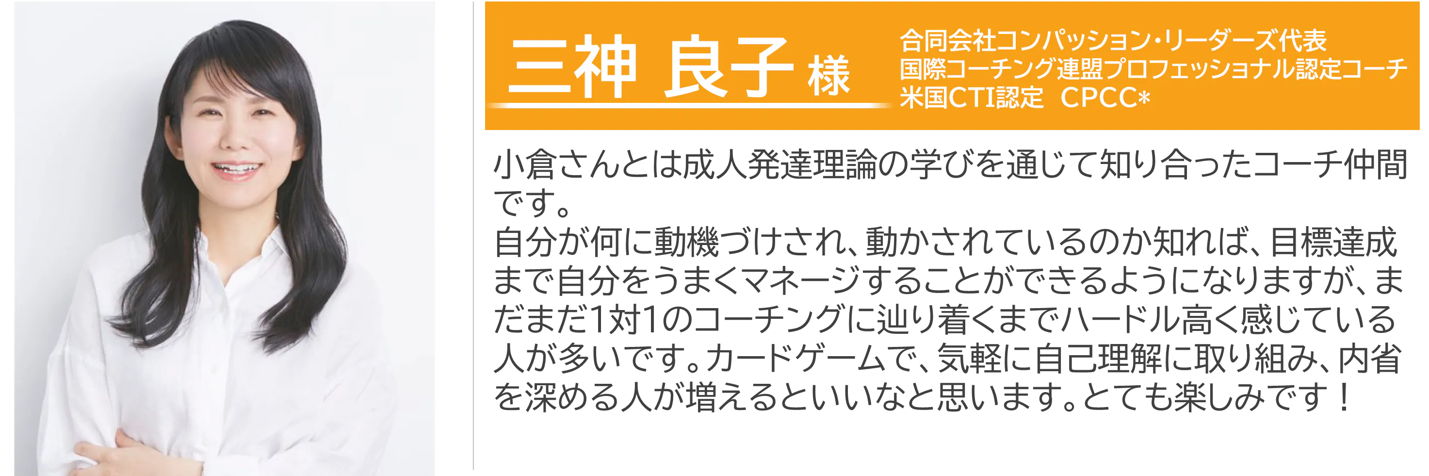 これらの経験から、私はコーチング仲間と共に「TeaMoモチベーションカード」を企画しました。