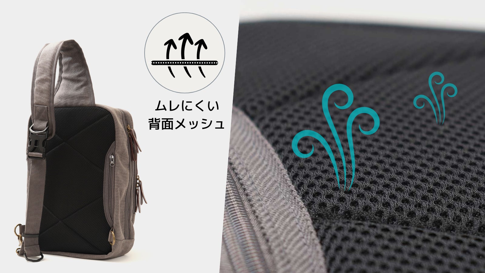 ボディバッグは「入り口が狭いから物が出しにくい」を解決。ファスナーを長くして180度開く設計にしました。