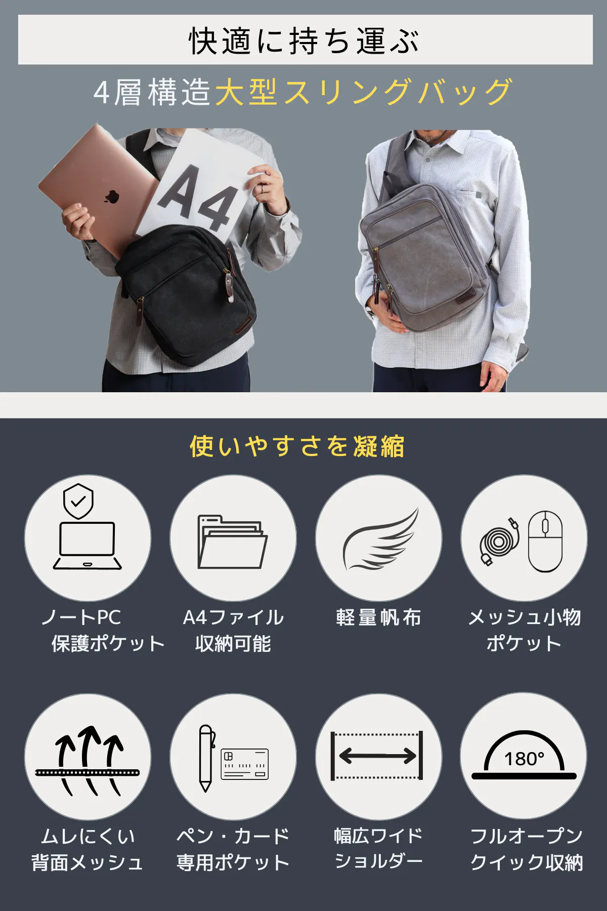 旅行も普段もコレ1つ!抜群の収納力を備えた「丈夫で軽量・帆布ショルダーバッグ」