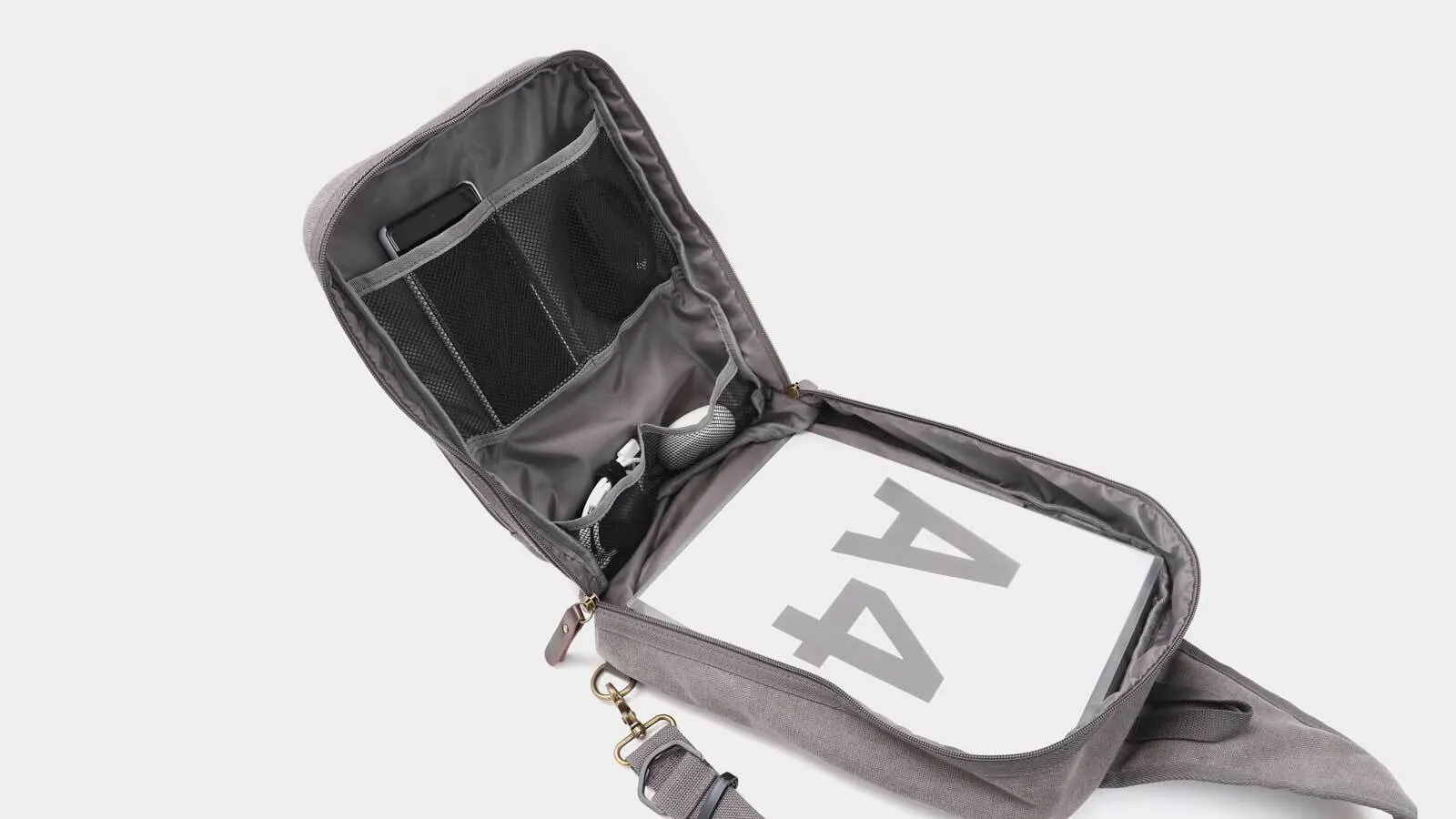ボディバッグは「入り口が狭いから物が出しにくい」を解決。ファスナーを長くして180度開く設計にしました。