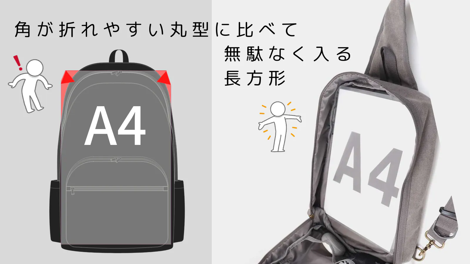 身体からはみ出ない縦型は混雑時でも両隣の邪魔になりません