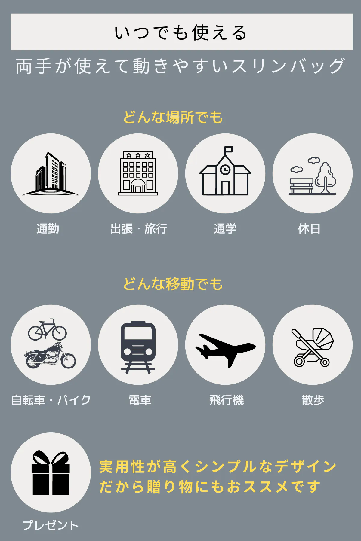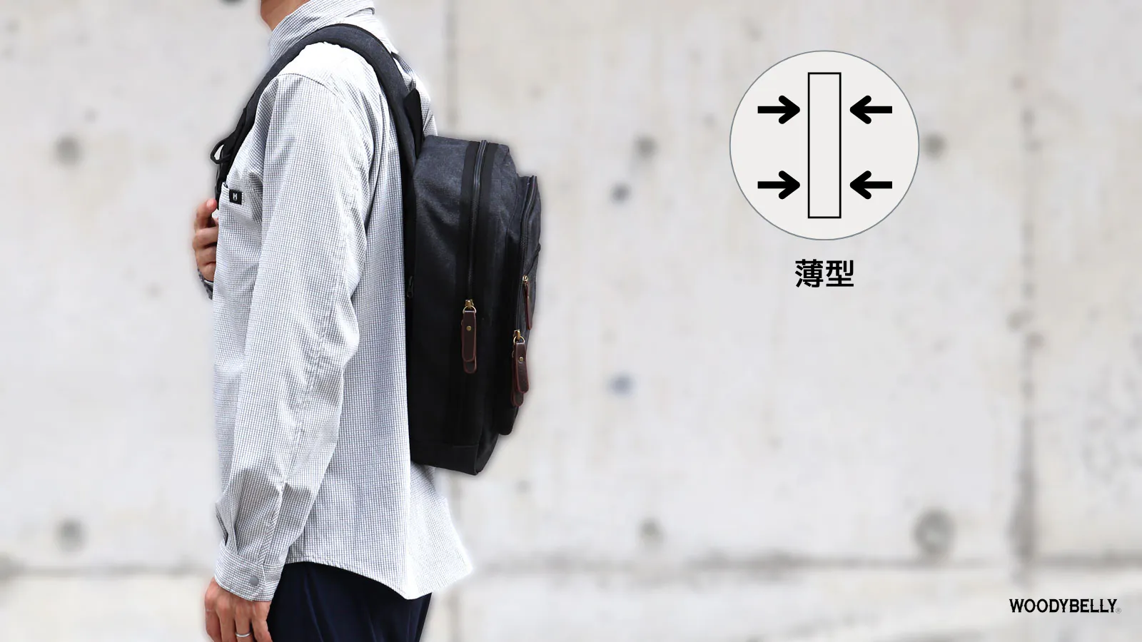 厚みがでにくい形状で人混みでも歩きやすい