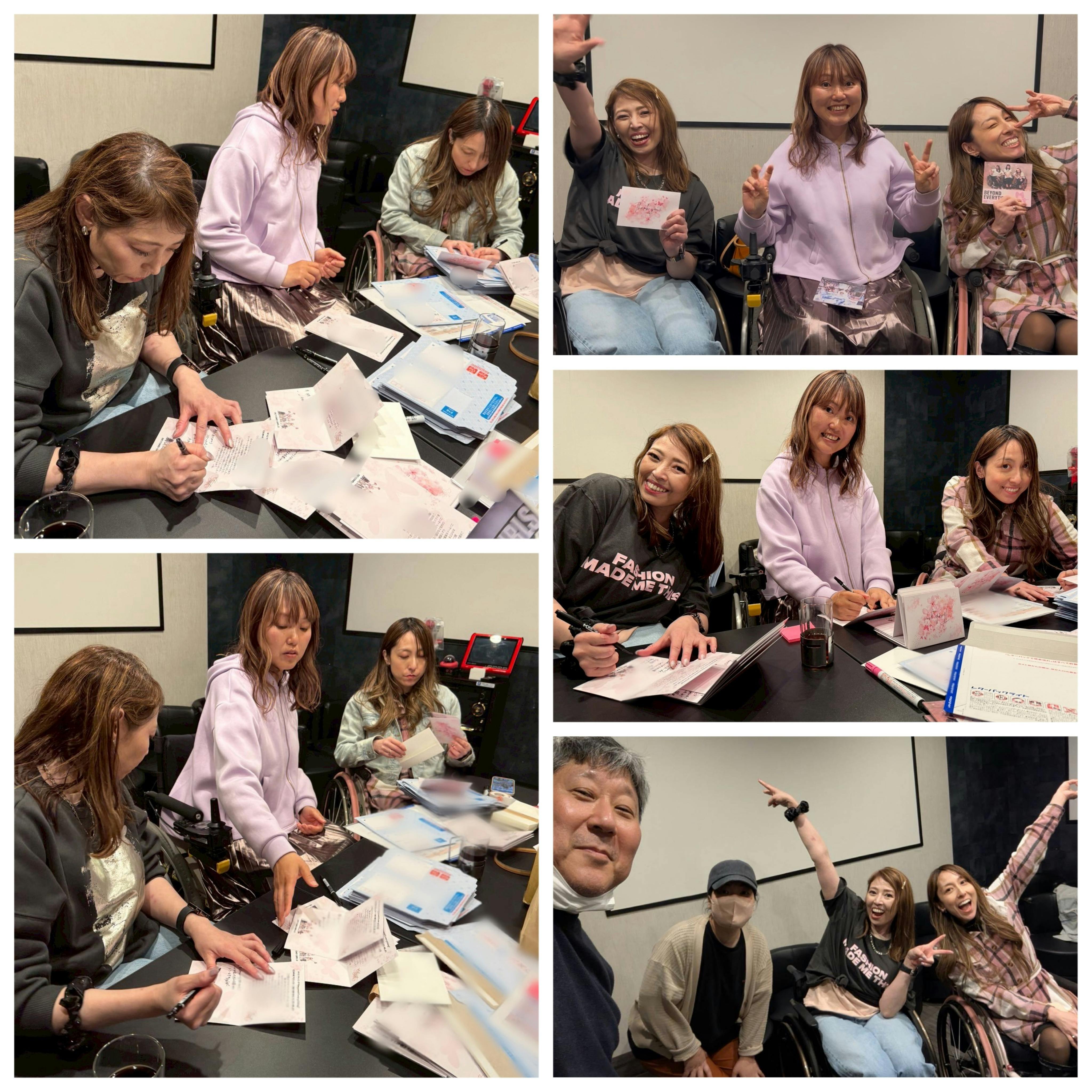 2025/04/24 13:18去る4月15日、約1ヶ月ぶりにBEYOND GIRLSで再会して、先月無事ゴールした、オリジナルソングCD発売&コンサート開催に向けたクラファンの返礼作業をしましたー!カラオケに集まり、歌いたい衝動抑えてw、クラファンで支援してくれた方々へのありがとうメッセージを書いたり、ありがとう動画の撮影をしたり、CDにサインしたり、宛名書きをしたり、包装して封をして、気づけば5時間カラオケに居座りましたw(中嶋涼子と梅津絵里は書くのに時間がかかり1時間半居残りw)1人1人の方を思い浮かべながらメッセージを書いてき、封筒に入れてサインをしてCDを同封して、なんとか5時間で無事全員分終了!!!!3人でほぼ会話もせずに、真剣に黙々と書き続けましたw段々手が動かなくなり字が震えてきたのでお手紙読みづらいかもしれません。。とある撮影隊が入って撮影をしてくれていたのですが、パニックの私たちを見かねてw最終的に撮影プロデューサーさんやカメラマンさんまで包装作業や確認作業を手伝ってくれて、なんとか約100名分の包装作業が完了!いつも誰かを巻き込んでしまうビヨンドwこれは3人ではとても終わらなかった。。手伝ってくれた撮影隊の皆様、本当にありがとうございました!CDやグッズのリターンを支援して下さった方々のお手元に、BEYOND GIRLSからのレターパックがそろそろ届いているかな?無事みなさんに届きますように!応援してくださった皆様、本当にありがとうございました!! もっと見る