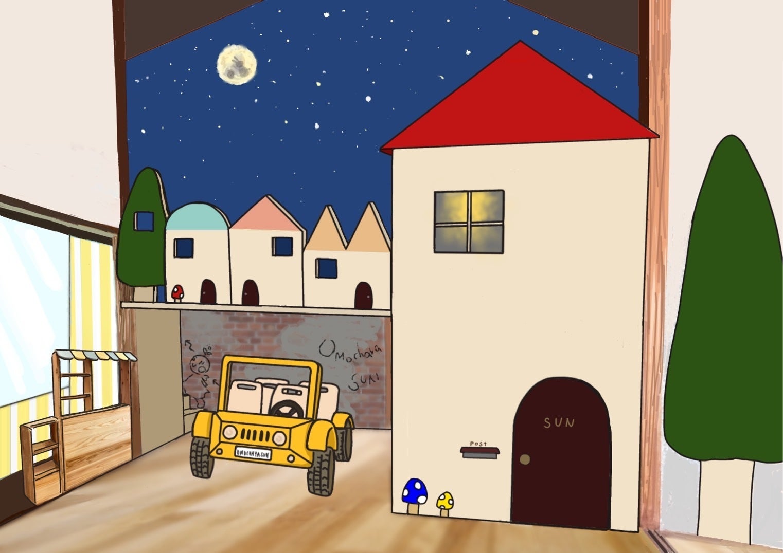 おもちゃ屋SUNのこれまでに製作してきたおもちゃを全て詰め込んだ木に囲まれた空間を作ります。