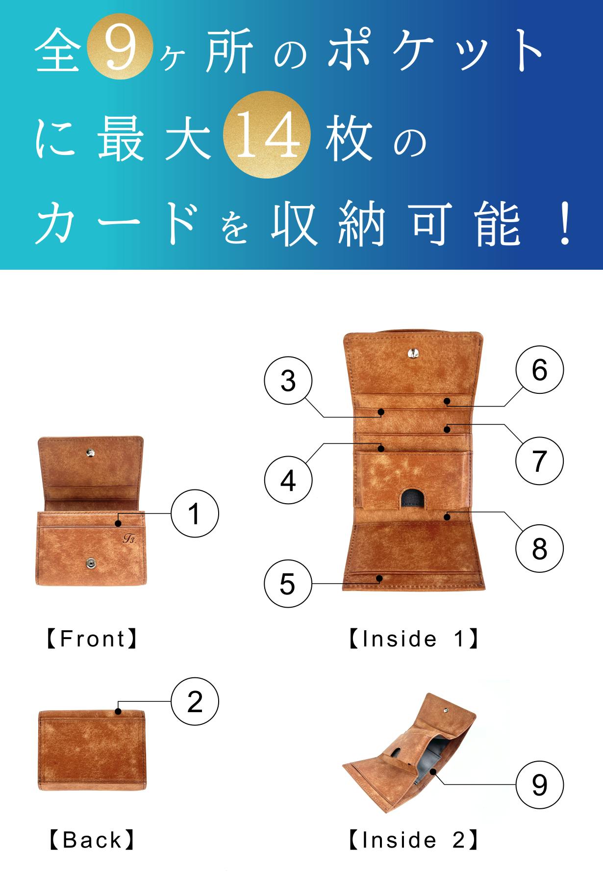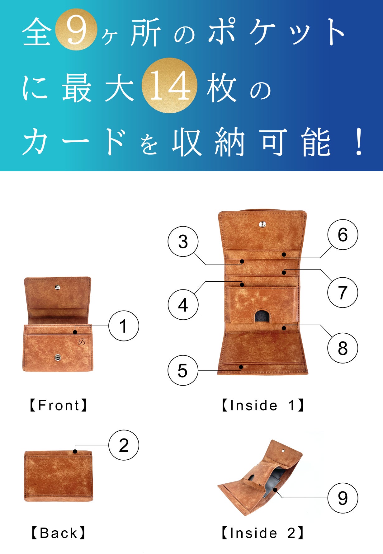 持ち運ぶカードを厳選する=減らすのではなく、使用頻度に応じて収納場所を分けることで最大14枚ものカードを収納できるPalmaは、たくさんカードを持ち運びたいあなたが持つのに最適な財布と言えるでしょう。