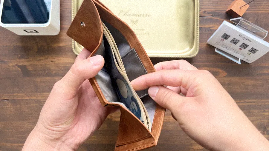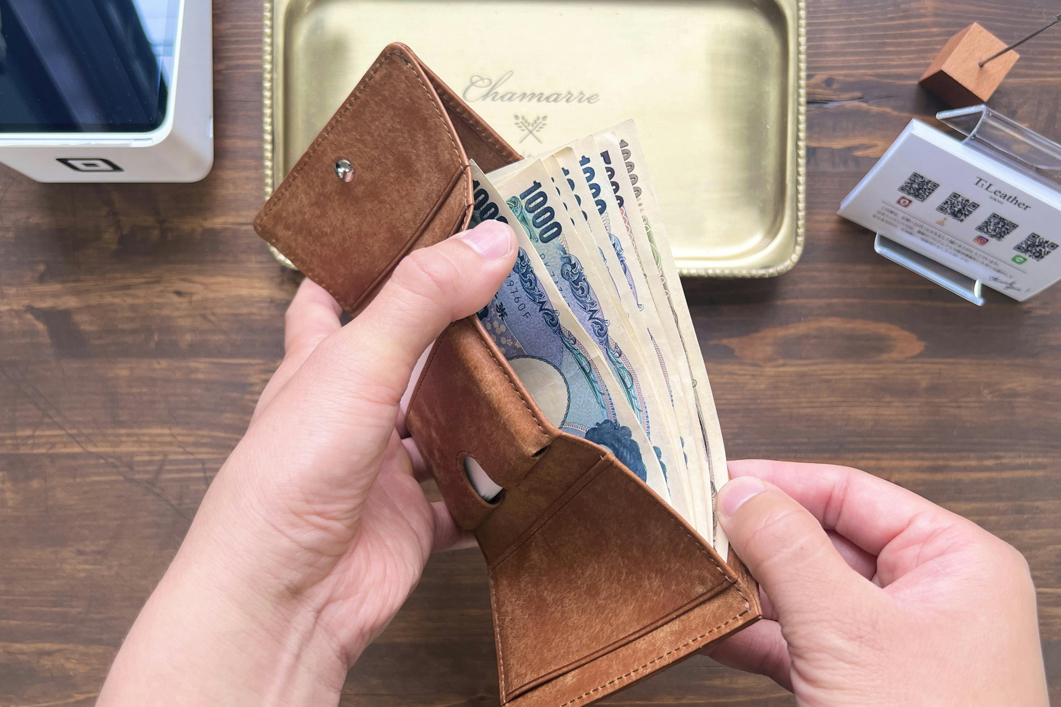 紙幣をキチンと並べる必要がなく、ガサッと仕舞えて快適です。
