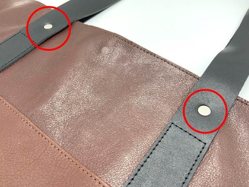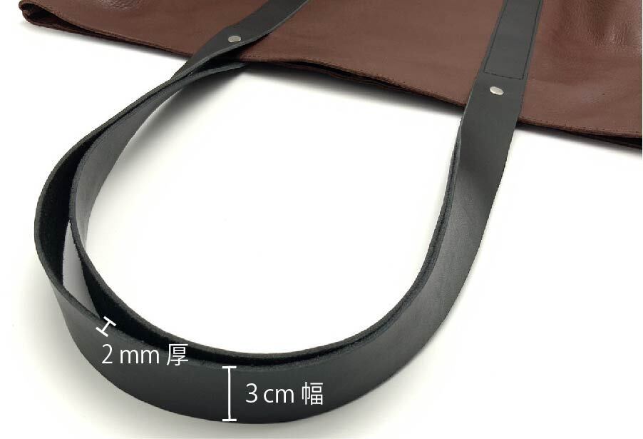 持ち手は、重たいものにも耐えれるよう、約2mm厚のスムース革を使用。