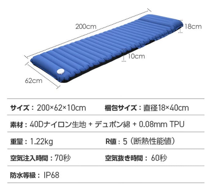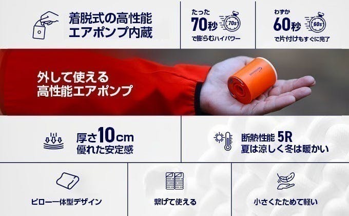 さて、私も含めたキャンプ好きならご存じかもしれませんが、多くのエアマットは膨らませるのに追加の道具や手作業が必要になります。ですがそうなると...
