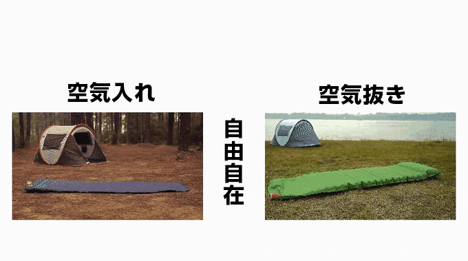 しかも、製品を膨らませるだけでなく、逆に空気を抜くことも可能です。