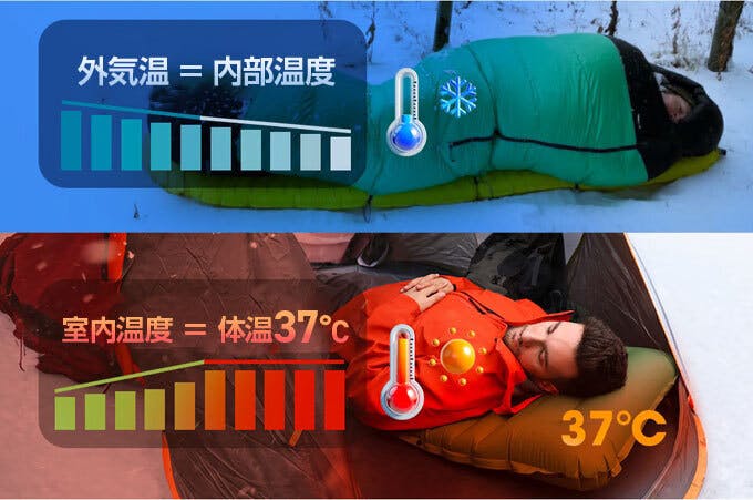 それにより、外気温や地面で体温を奪われる心配が少なくなり結果として全ての季節で快適に過ごすことができるようになるのです。