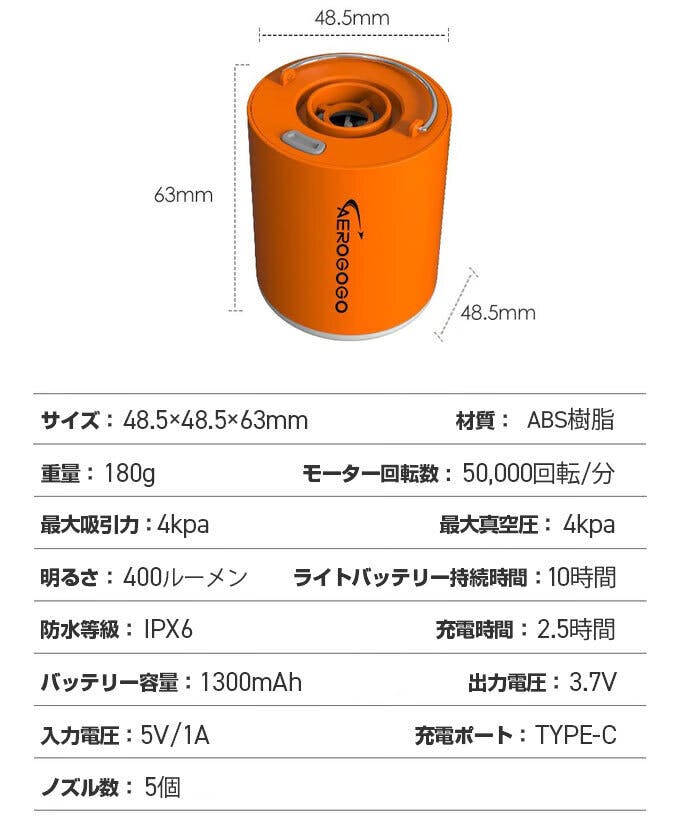 「機能は少ないほど良い」という原則を体現し、最大圧力4kPa、流量300L/分を実現できます。驚くべきことに、内部の回転速度は最大30,000rpmに達します。このコンパクトで頑丈なポンプは、迅速かつ効率的な空気注入を保証し、キャンプ体験をより便利で楽しいものにします。