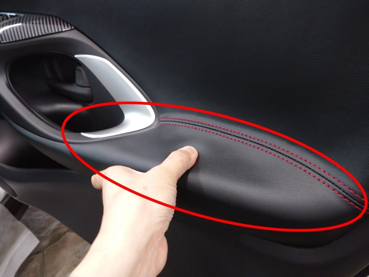 2024年1月のマイナーチェンジでドア内張りがケバケバ生地からスエード調生地に変更されました。スエード調内張りにもしっかり貼り付けられるのか検証してみました。