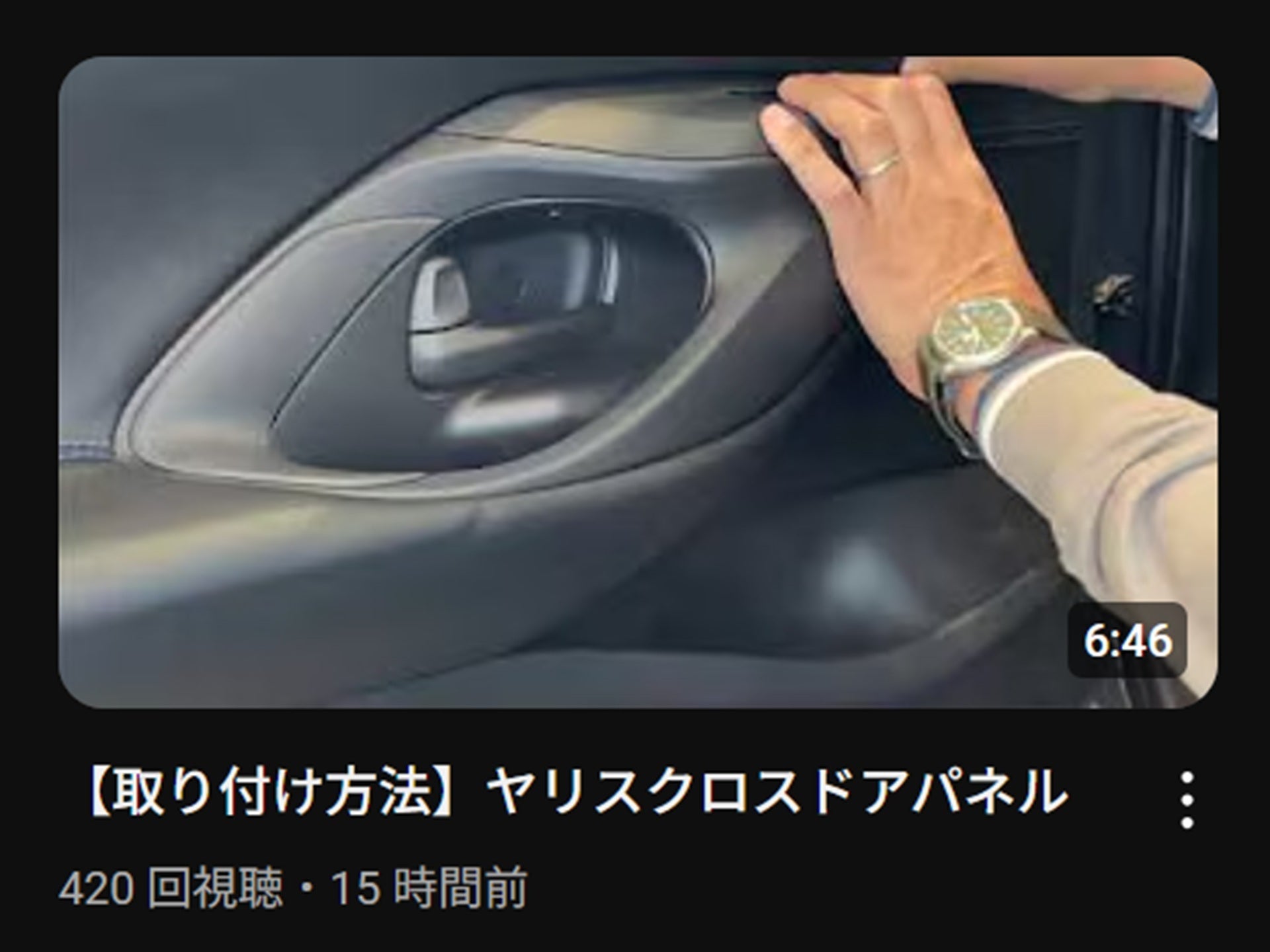 製品開発プロジェクトを立ち上げた発端は2021年4月、自社YouTubeチャンネルでトヨタ_ヤリスクロスの後付け内装パーツの開発の模様を収録した動画に、オーナー様から「ドア内壁のケバ立った内張りが不快で何とかならないものか」という相談のメッセージが投稿されたことでした。