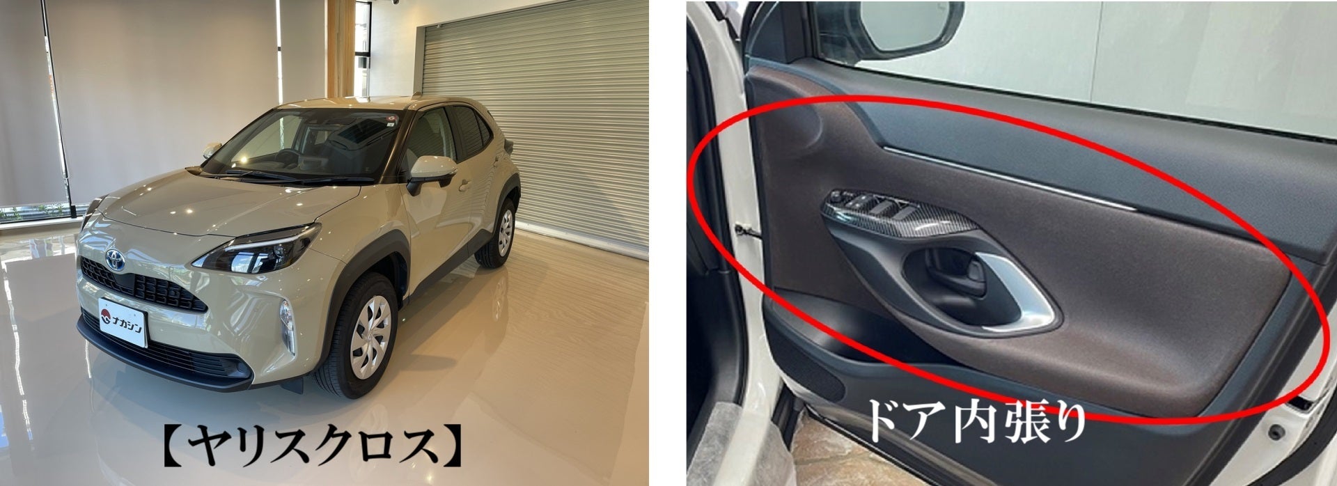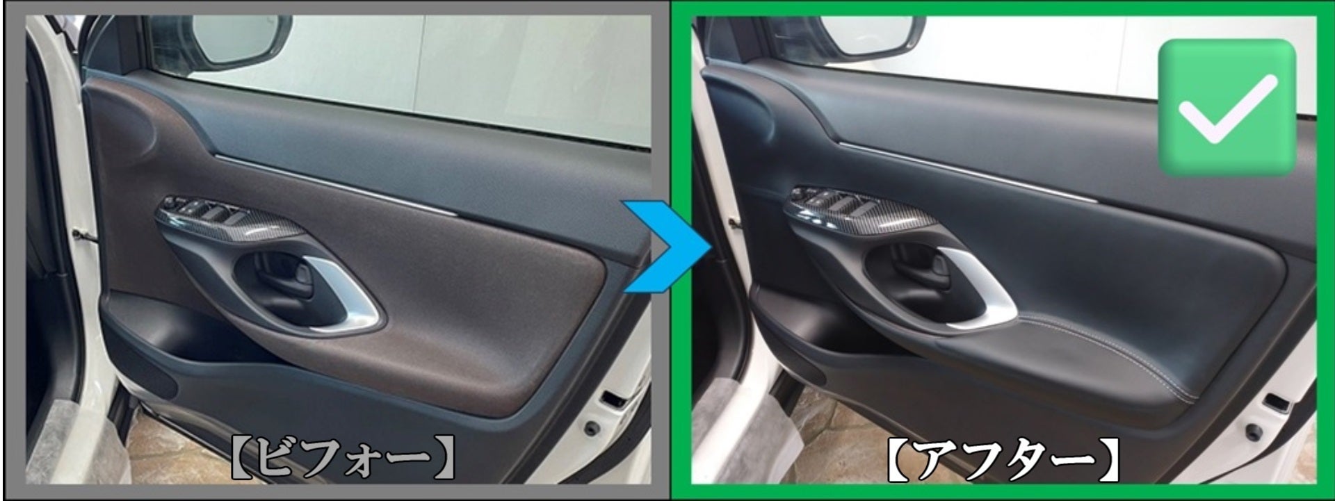特にドアグリップやアームレスト付近など手や腕で擦れやすい部分の劣化が進みやすいようです。その結果インテリアの印象がよりチープになってしまうことに多くのヤリスクロスオーナーの皆様が悩まれているようです。