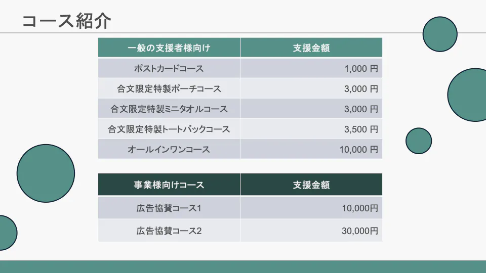 ※リターンの詳細は、今後追加・調整する可能性があります!