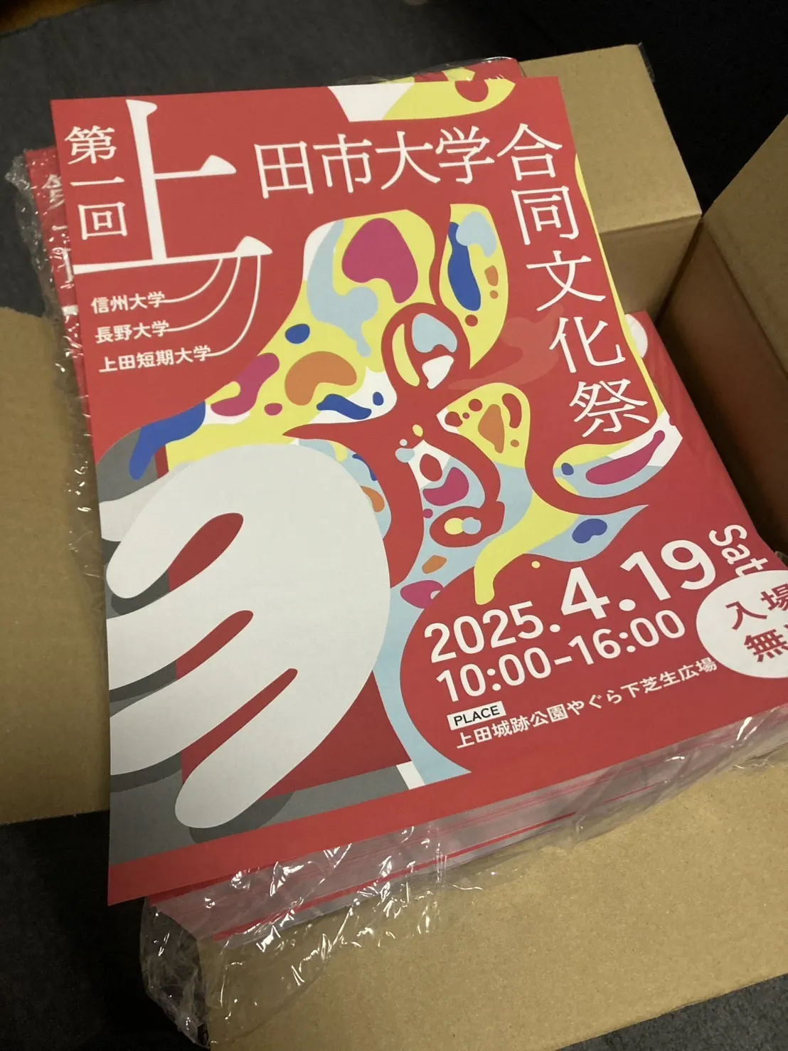 第一回上田市大学合同文化祭のポスターが完成しました。ポスターデザインは、長野大学デザイン同好会 コトポート様に依頼し制作していただきました。「たくさんのキャラクターが集まり、枠組みを超えるイベントにする」という概念的なイメージを素晴らしいデザインに落とし込んでいただきました。インパクトのあるポスターになったと思います。完成したポスター、チラシは、3月下旬から開催までの期間で上田市内の様々な場所に掲示、配布させていただきます。目に留まったらぜひ手に取っていただけたらと思います。開催まで残り24日。実行委員一丸となって本格的に準備を進めています。お楽しみに!!
