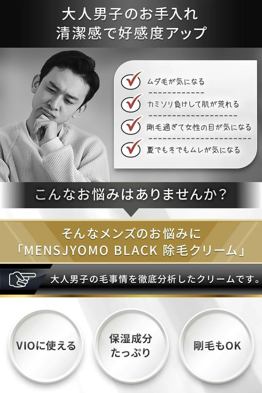 こうして誕生した「MENSJYOMO BLACK」は、私たちの夢と努力の結晶です。敏感肌の方にも安心して使っていただけるよう、天然成分、特に黒炭にこだわり、厳しい品質管理を行っています。肌に優しいのに、しっかりとした除毛効果を実感していただけることでしょう。