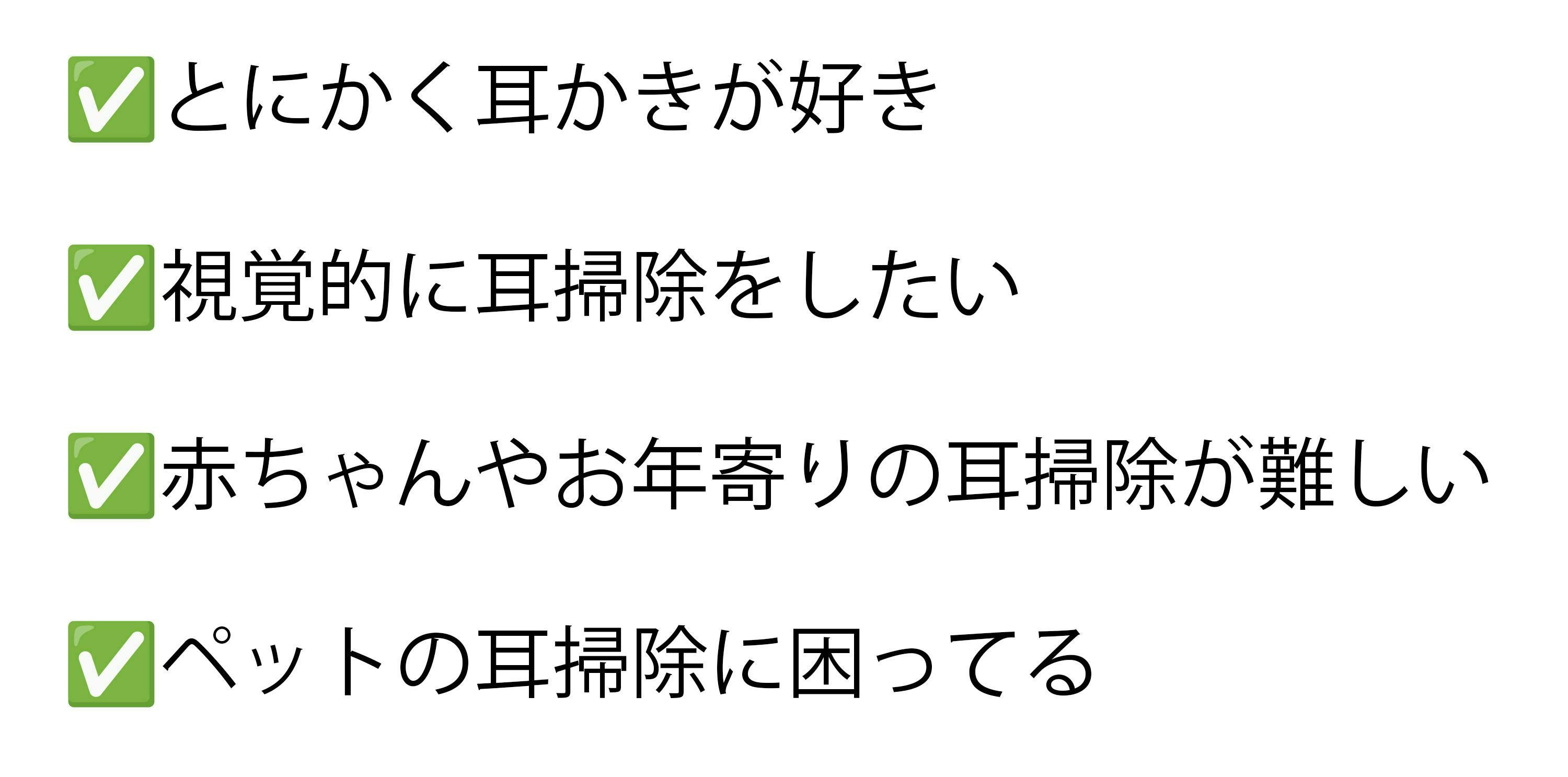 従来の耳かきでは目視が難しく、耳垢も完全に取り切れないことが多く、不衛生な状況を招きかねません。