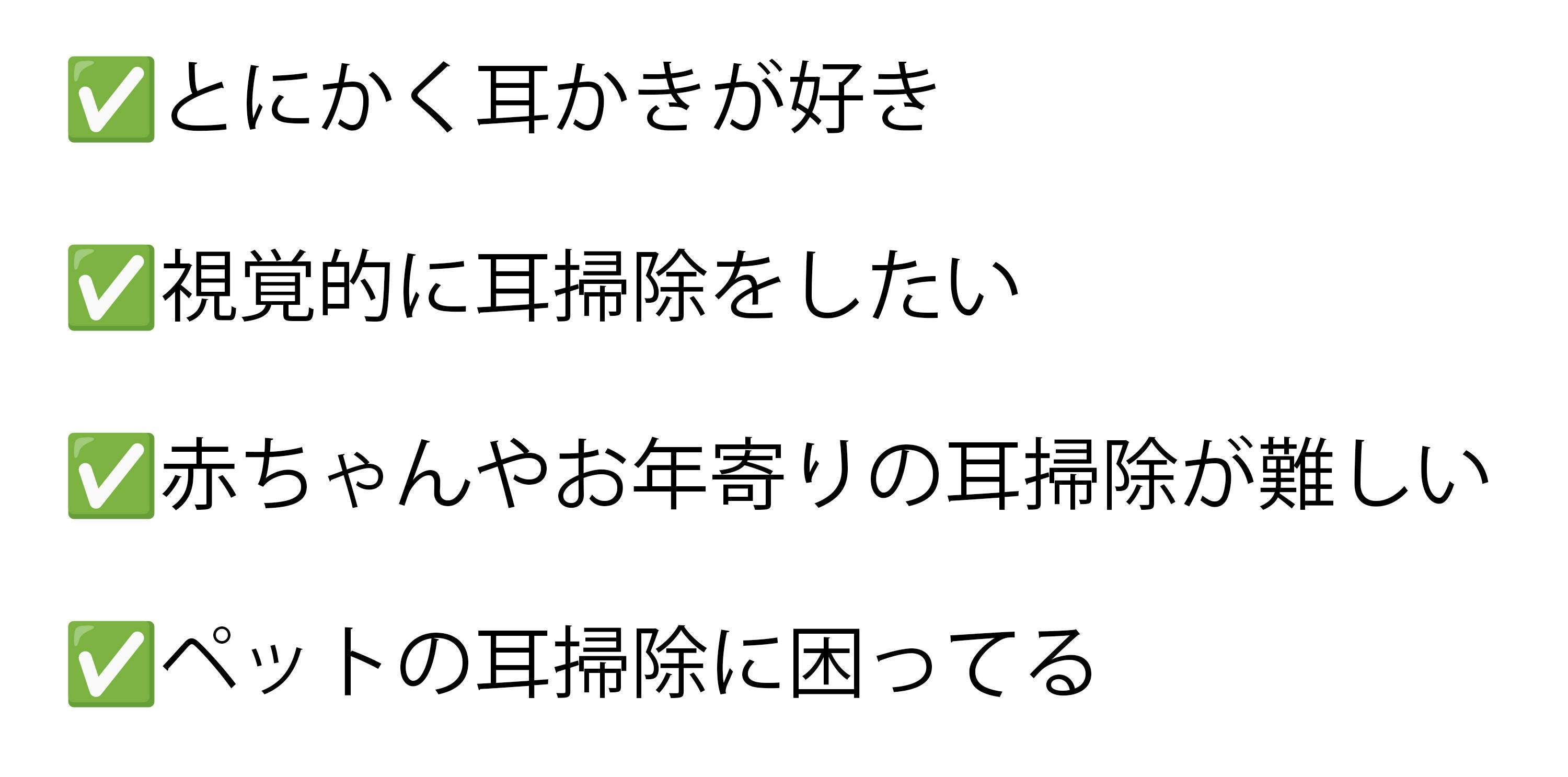 赤ちゃん、ご年配、動物にも使える、視覚的に確認できる耳ケアMIMIKAKI。
