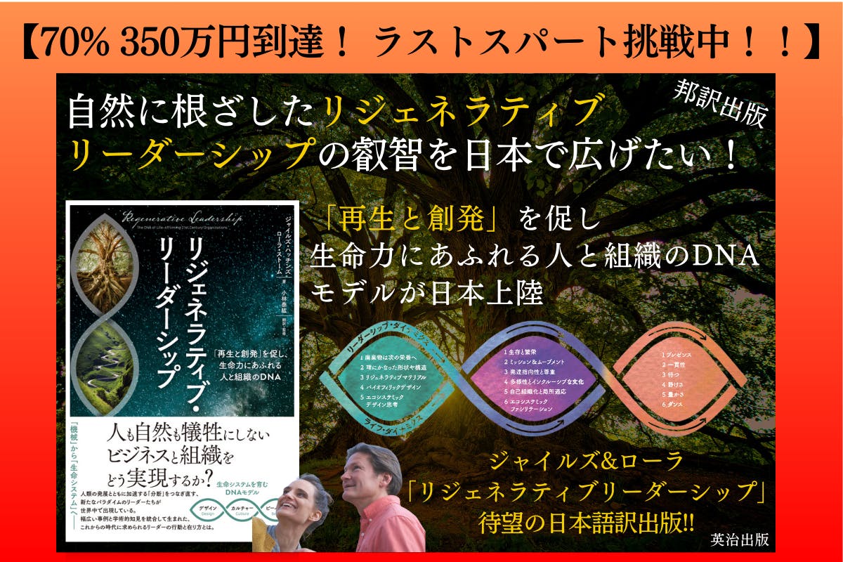 「リジェネラティブ・リーダーシップ」の世界観を実際に、身体で体験できる魅力溢れる特別プログラムもすべてのリターンが出揃いました。