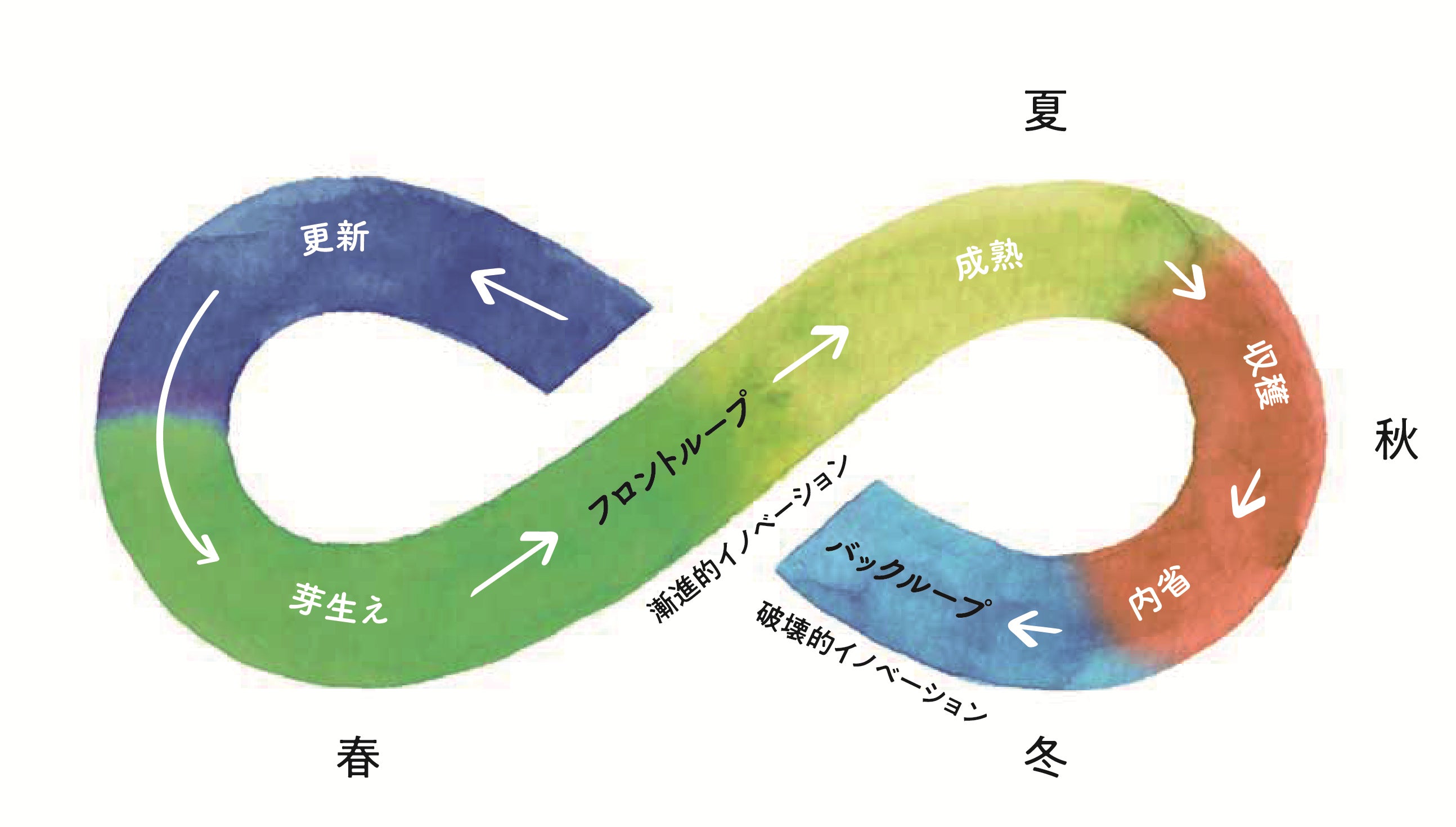 季節のめぐりは自然の知恵の核心である。生命の脈打つ躍動のなかで絶えず展開される周期やリズムを通じて、内面や周囲とのより深いつながりへとひらかれていく組織をバラバラの部品からなる「機械」ではなく、相互につながり合う「生命システム」として捉え、あらゆるステークホルダーの生命の繁栄を大切にする。そして、自身の内面や生命感覚に深くつながりながら、自分たちを取り巻く外部システムの活力や、森羅万象が相互につながりあう自然界の動態への感度を高め、呼応し、システム全体の創発的な変容を促していく。