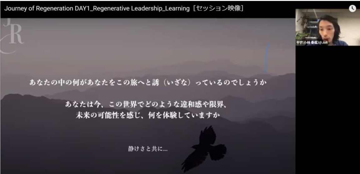 そんな中、小林さんが代表をつとめる一般社団法人Ecological Memesにて、リジェネラティブ・リーダーシップを土台とした「Journey of Regeneration」を山田博さんと共に開催することになります。コロナの状況もあり、14週間のオンラインでのプログラムとなりましたが、リリースするや否や、想像をはるかに上回る反響があり、国内外から80名を超える参加者が集いました。リジェネラティブ・リーダーシップのエッセンスが思っていたよりもずっと多様な文脈の人たちと分かち合えることを確信します。