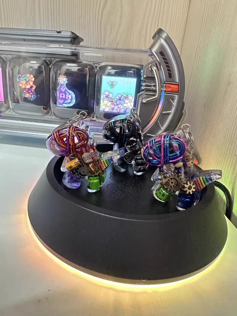 精巧な歯車と電子部品が組み合わさった、まるでアートのような作品です。メカニカルなデザインが好きな方にとって、他にはない独自性と高級感を兼ね備えた一品となっています。細部にまでこだわったディテールが、あなたのスタイルに一層の深みを加えます。