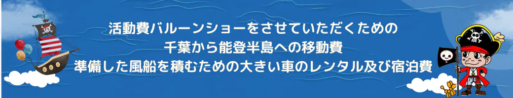 そんな海賊タロウさんとふとした雑談の中で、「ぜひ一緒に能登の応援にいきたい、今なおがんばる能登に最高の笑顔を届けさせていただきたい」となり、今回のプロジェクトをオープンさせていただきました。