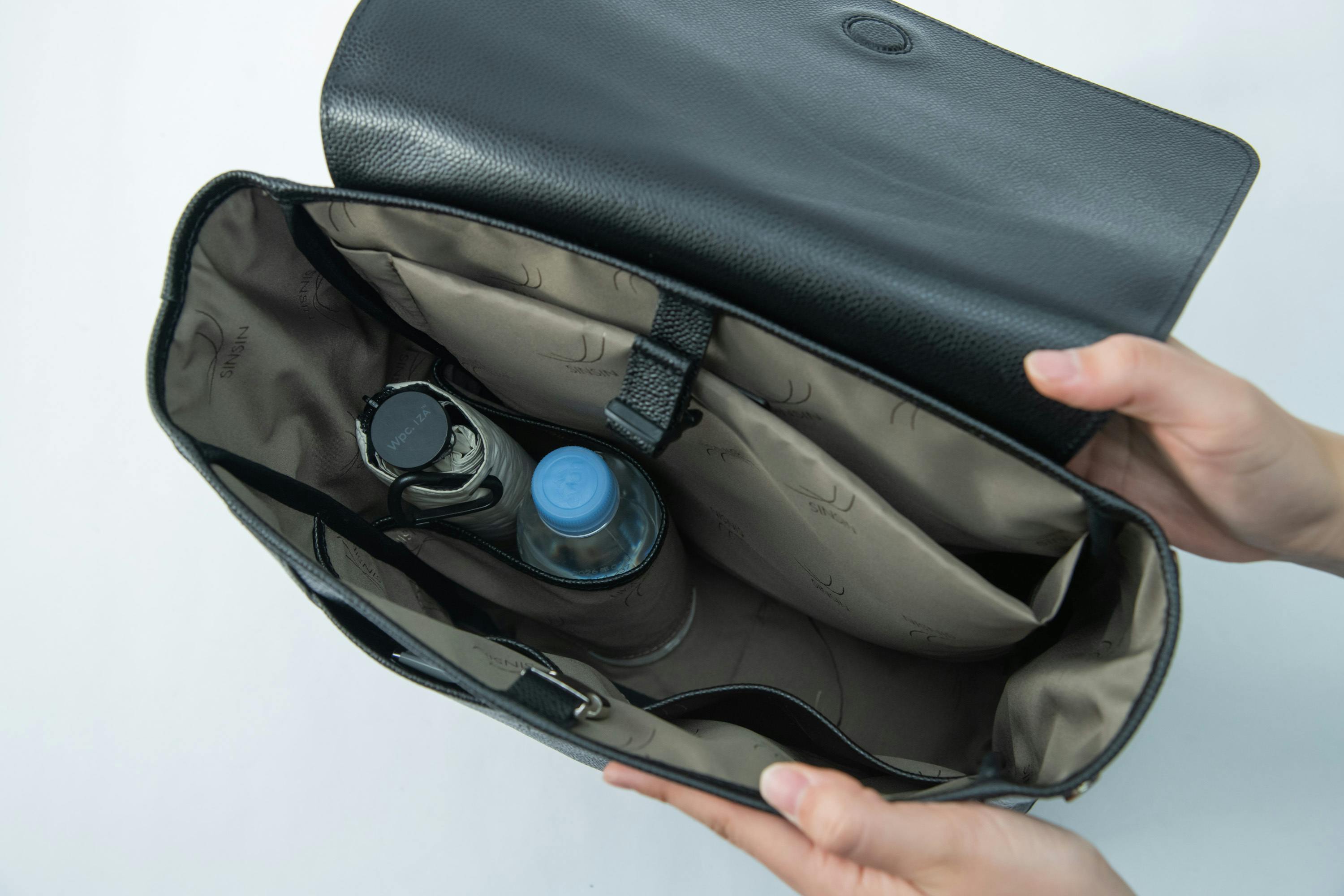 大人リュックには明るめのグレー系の裏地を採用したので、中身を広げた時に光が反射し見えやすく、取り出したいものをすぐに見つけることができます!