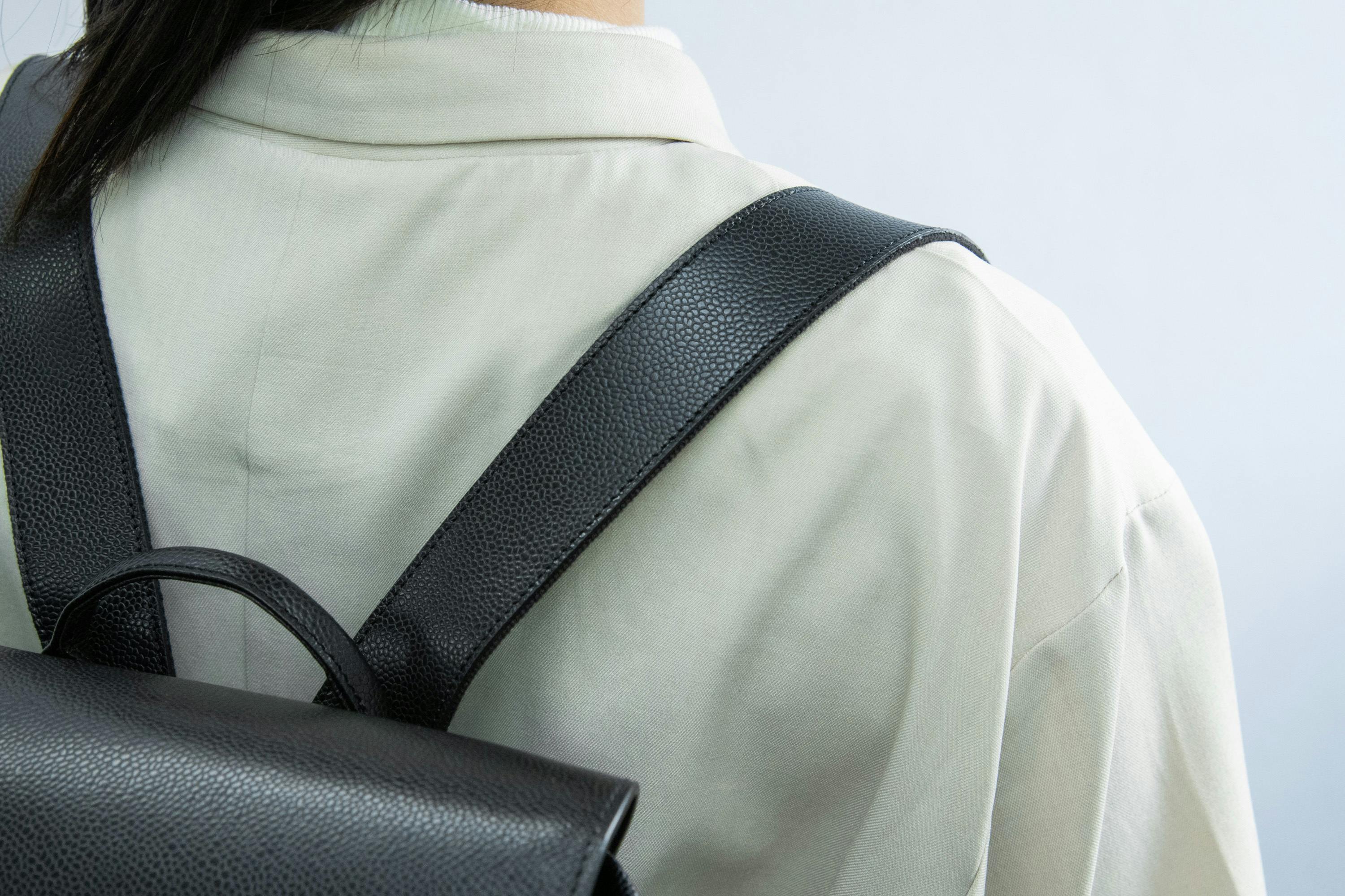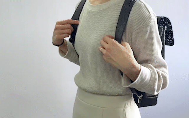 レザーが体を包み込むようなデザインは体にフィットします。リュックが安定し、長時間使用しても疲れにくい設計です。