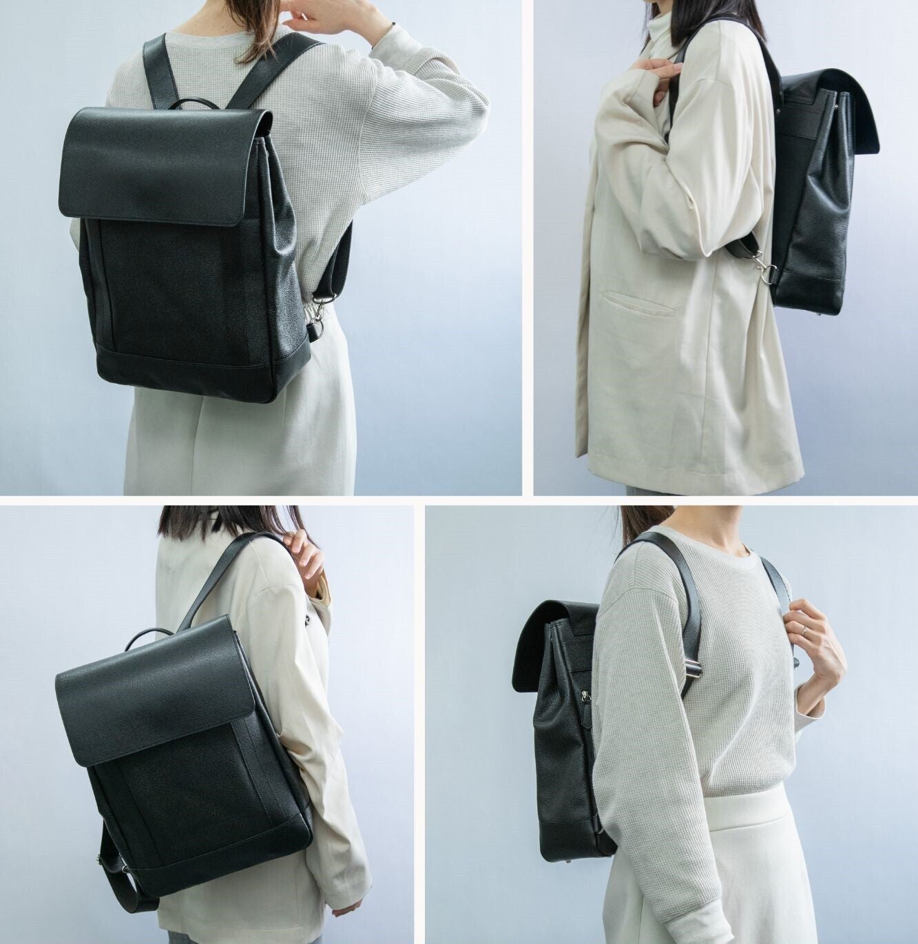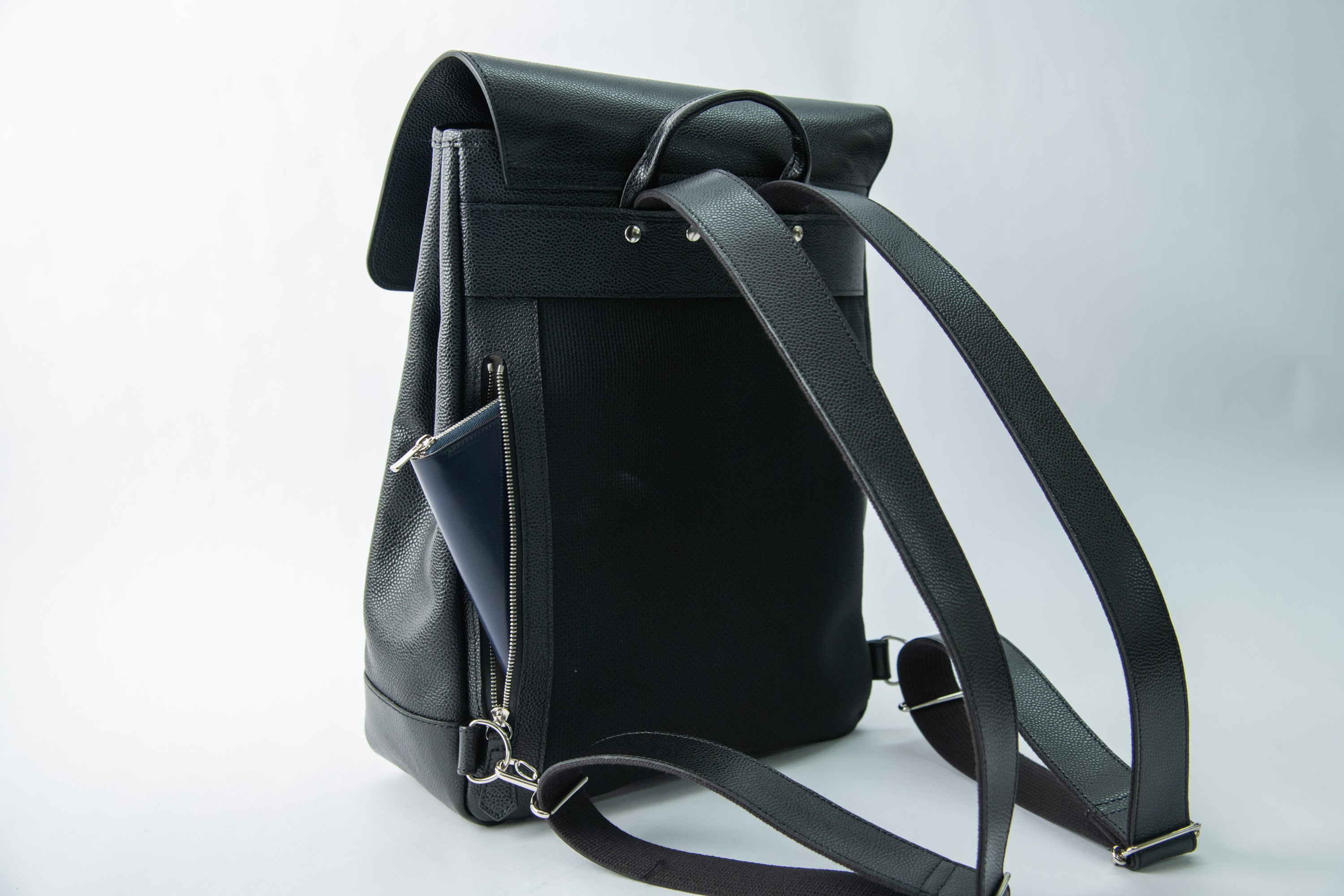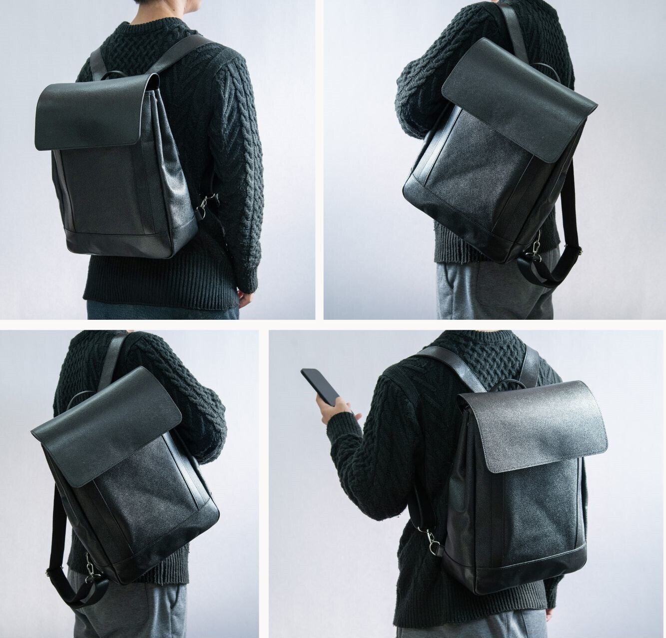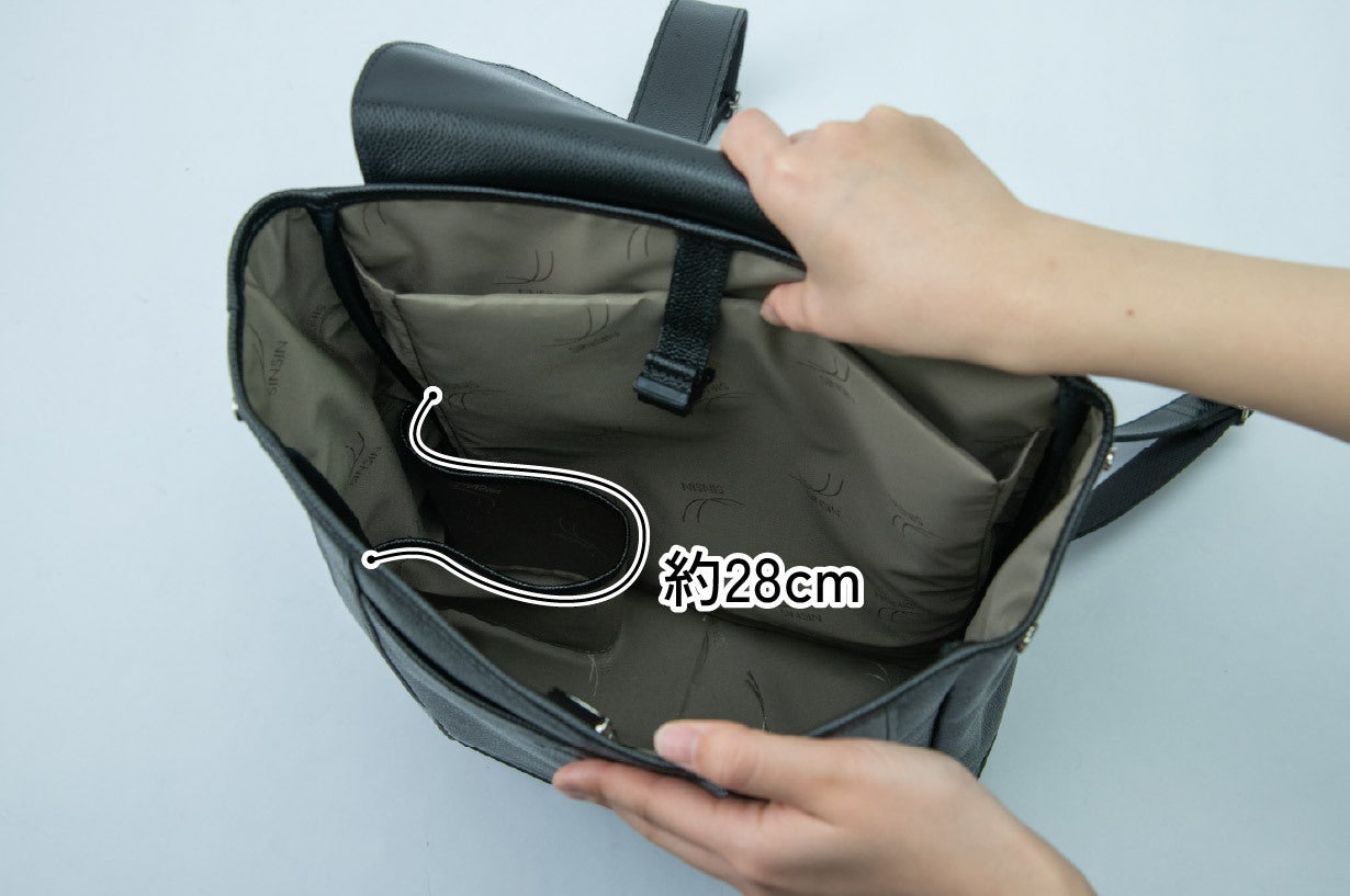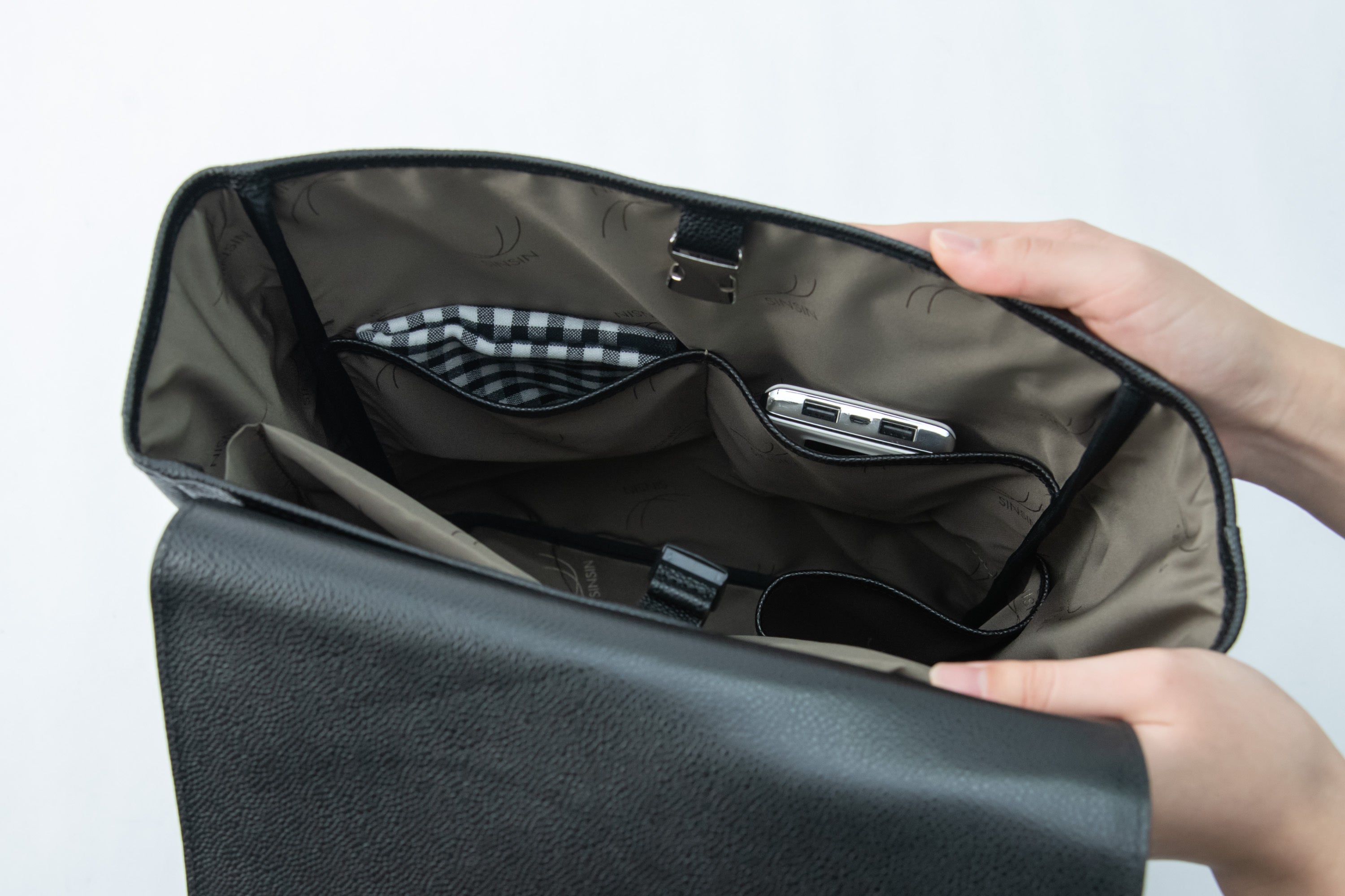 隠しマグネットを採用することで、リュックの上品さと高級感を損なうことなく仕上げています。