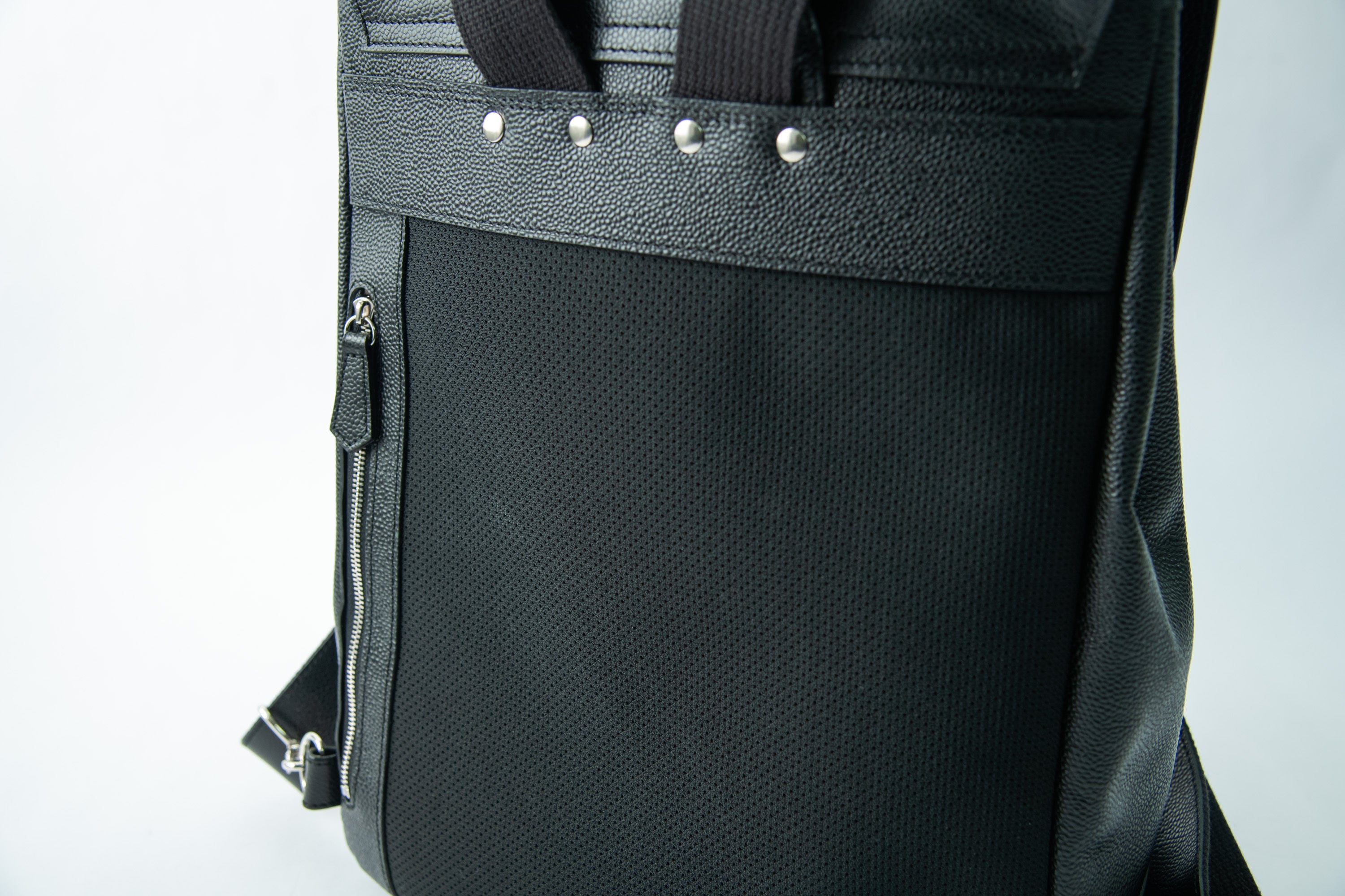 背中部分にはメッシュ生地を採用したので、革だと敬遠したくなる夏場などでもストレスなく使用いただけます。