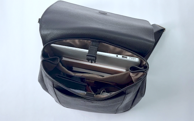 クッション性のあるPCポケット付きなので、パソコンも持ち歩けます。