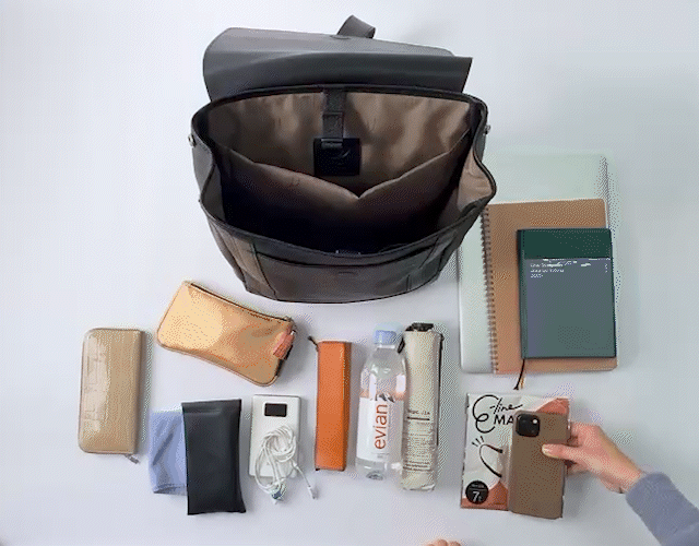 スリムな見た目ですが、これだけの荷物がスッキリ収まります。