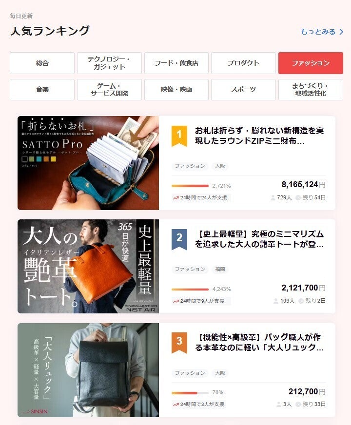 開始直後から温かいご支援をいただき、現在ファッション部門3位を獲得しております!