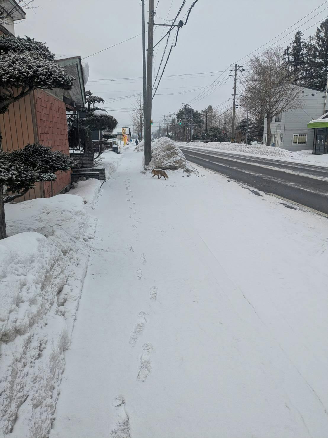 以前、下校時間にウロウロしていて小学生に追いかけられていたキツネだと思います