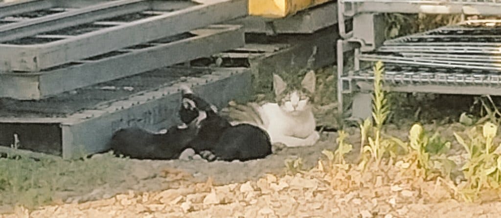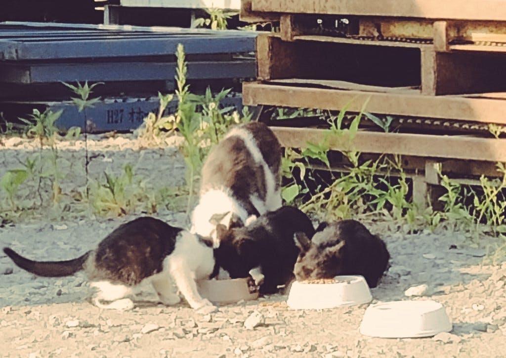 いつもお母さんは子猫たちが食べ終わるまで少し離れたところで見ていました