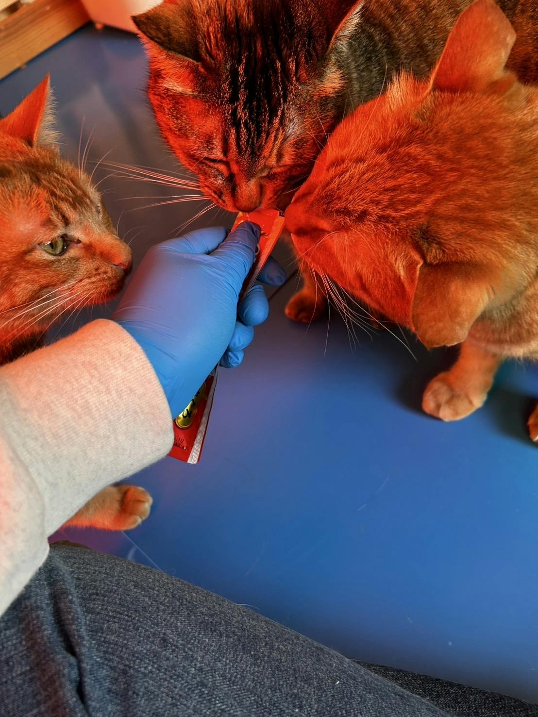 3人にちゅーる分けてるの