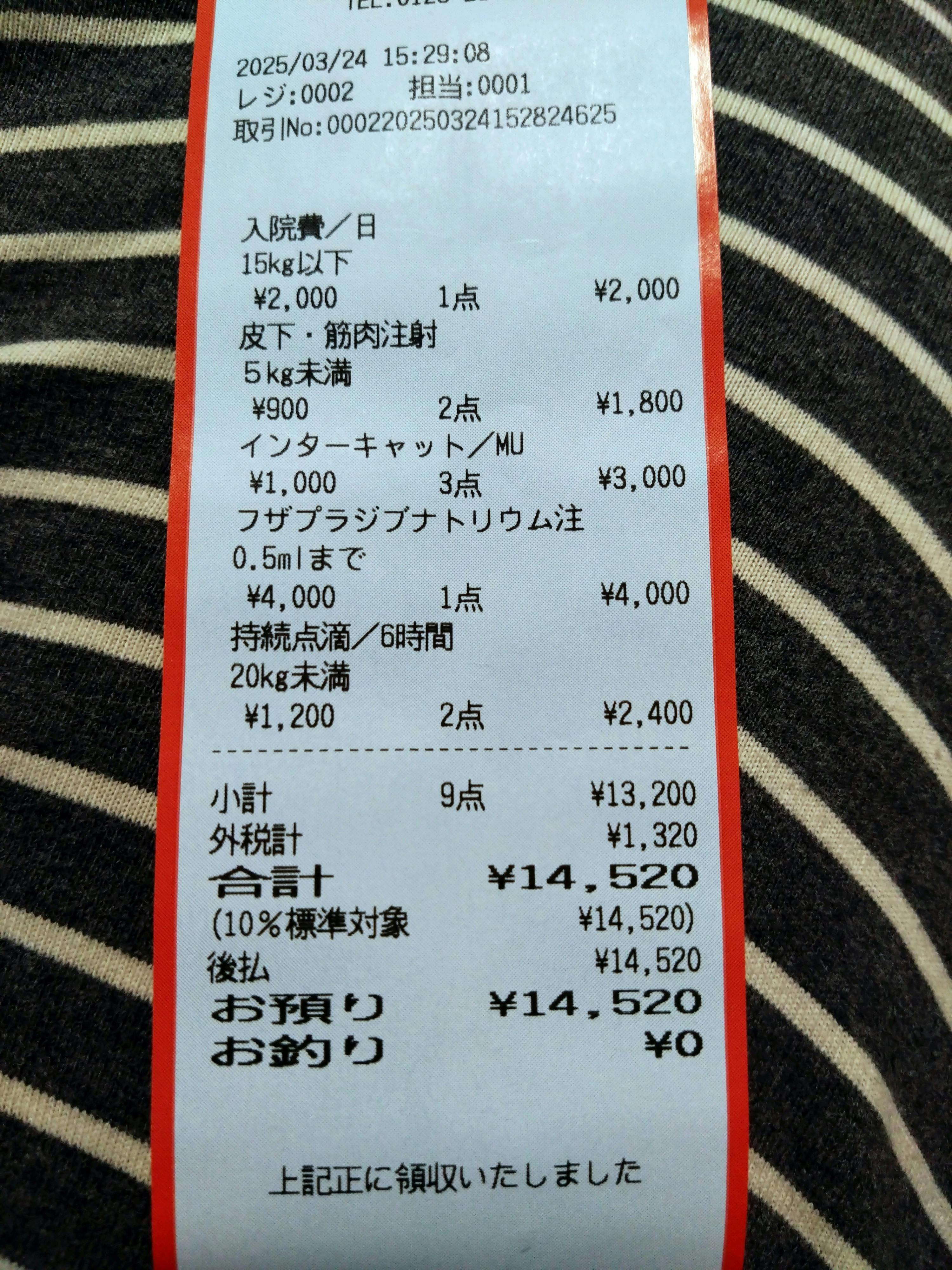 今後、FIPの治療をされる方のご参考になればと思い写真の添付いたします