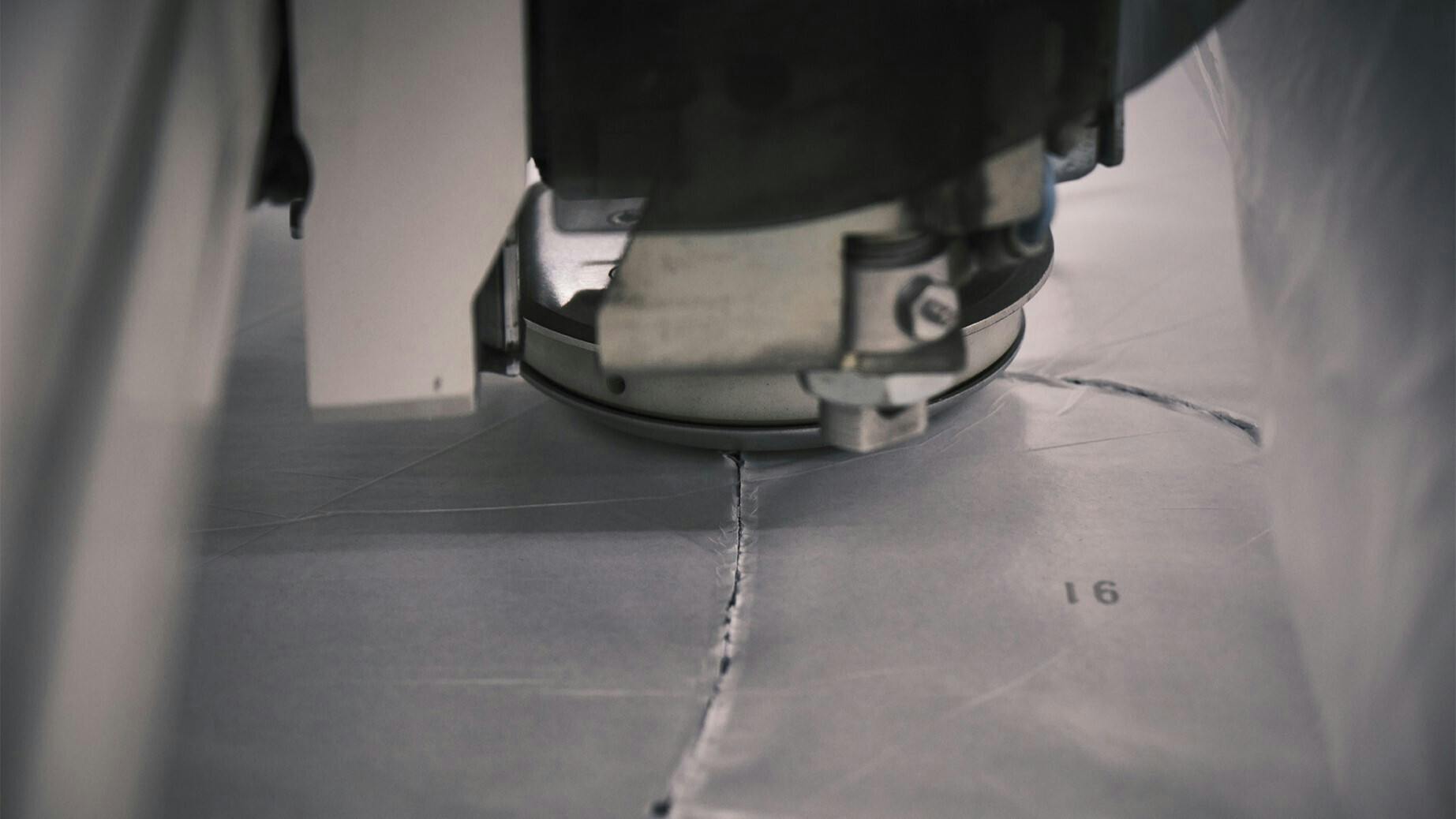 最新鋭の機械により、生地を正確に裁断。加えて、実際に職人さんの目で細部を確認。