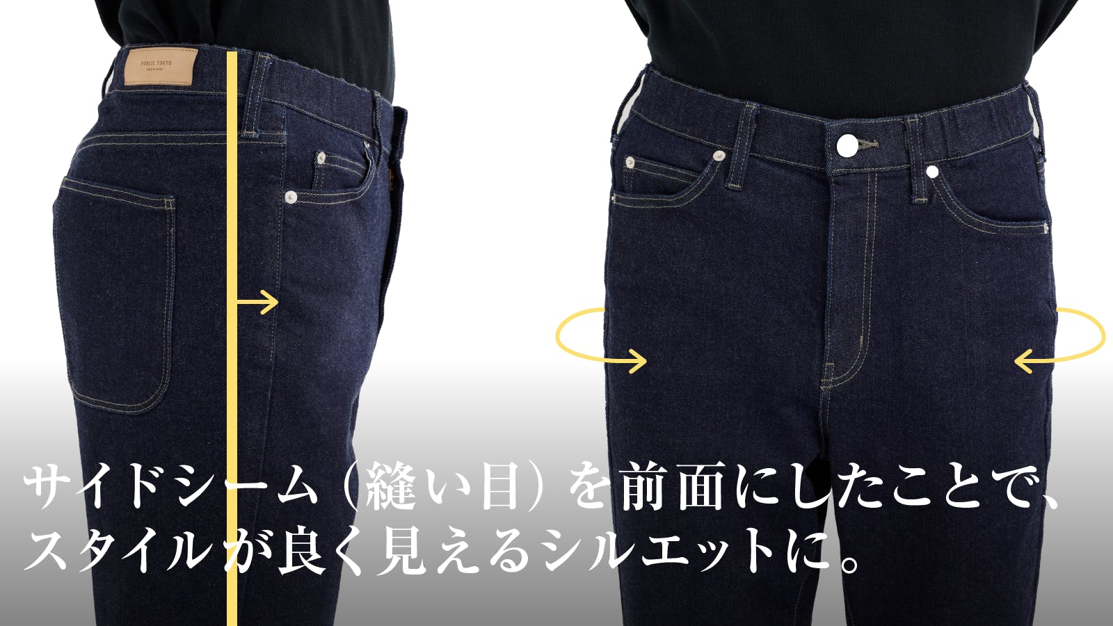 ウエストも驚くほど伸びます。つまり、快適に過ごせるリラックス感があるのに、ダボつかずにスタイルが良く見えるデニムが完成しました。