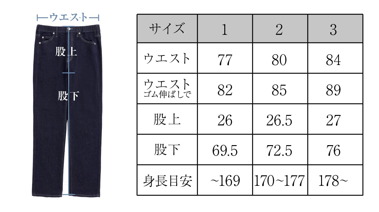 また、渡り幅(太もも周りの太さ)は広めな設計にしているので、足腰がしっかりしている方でも”パツりません”。