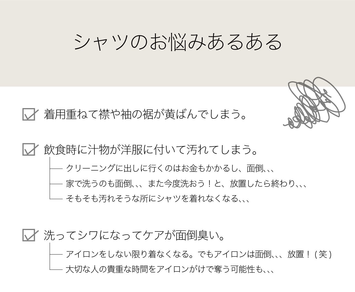 シャツが好きな方、着たいけどケア面で悩みがあった方、シャツを着たことがない方、全ての方々に『感動』を生み出せる商品です。