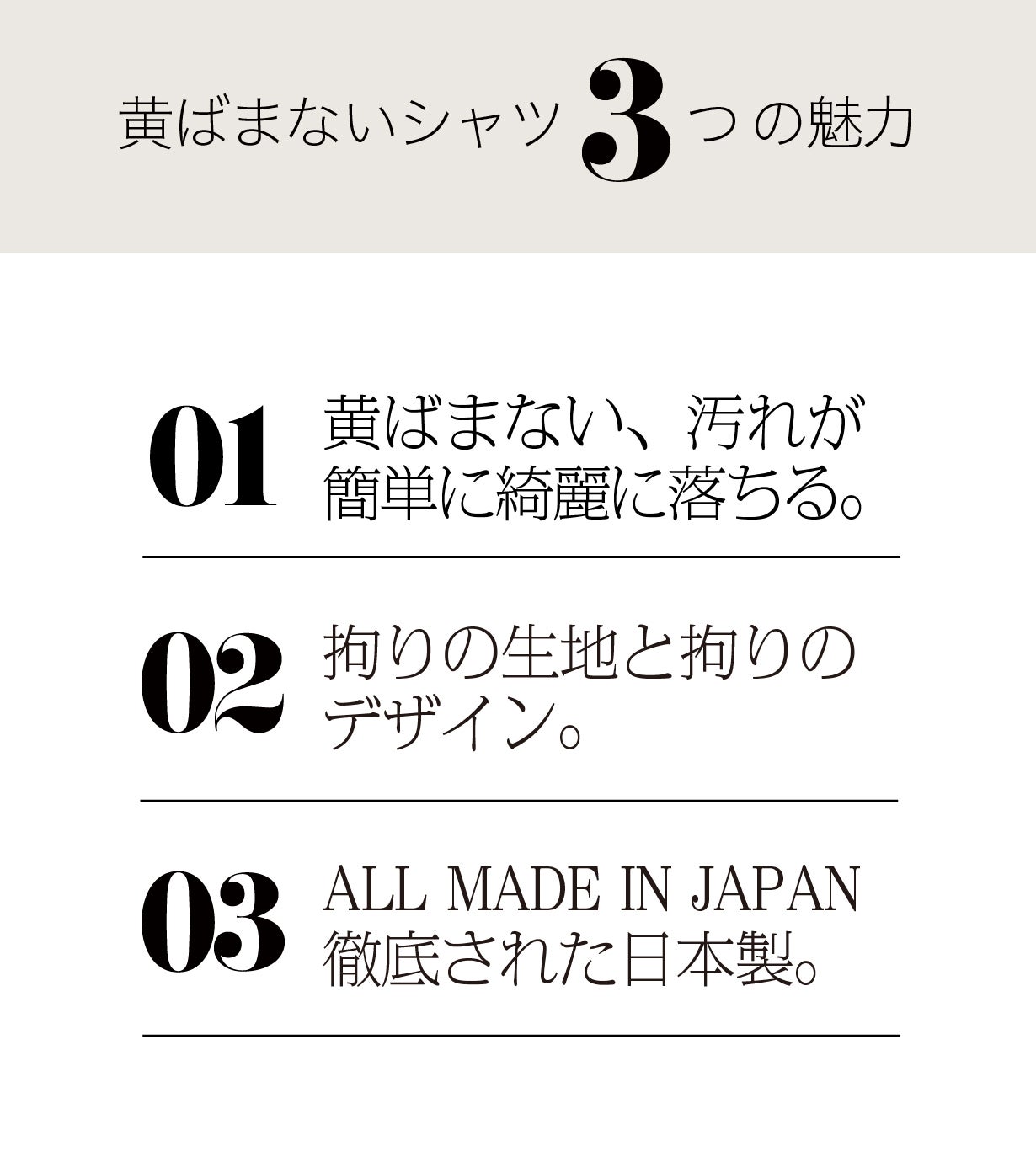 黄ばまないシャツは特殊な加工、生地本来の特徴によってそれらを未然に防ぐことができます!