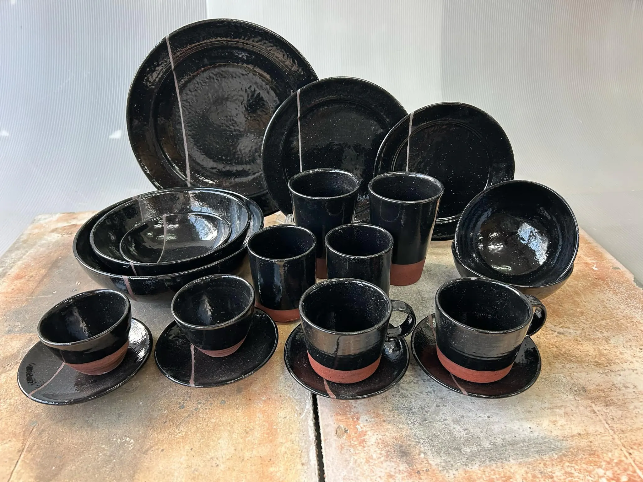 能登瓦再生陶器で作った、湯呑み、ビアマグ コーヒーマグ 飯碗 皿大 皿中 皿小 ボウル大 ボウル中 です。