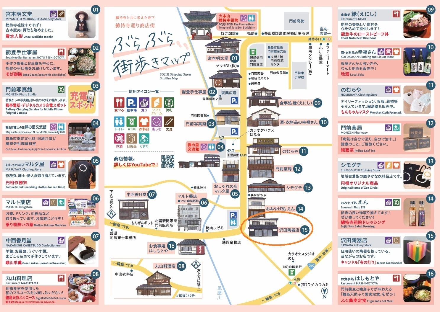 この商店街は歴史も長く、多くの店舗が並んでいました。いまは仮設店舗として営業されているところや、“未来”を模索されているところもある様子。私たちも商店街を歩き、總持寺を観光しました。