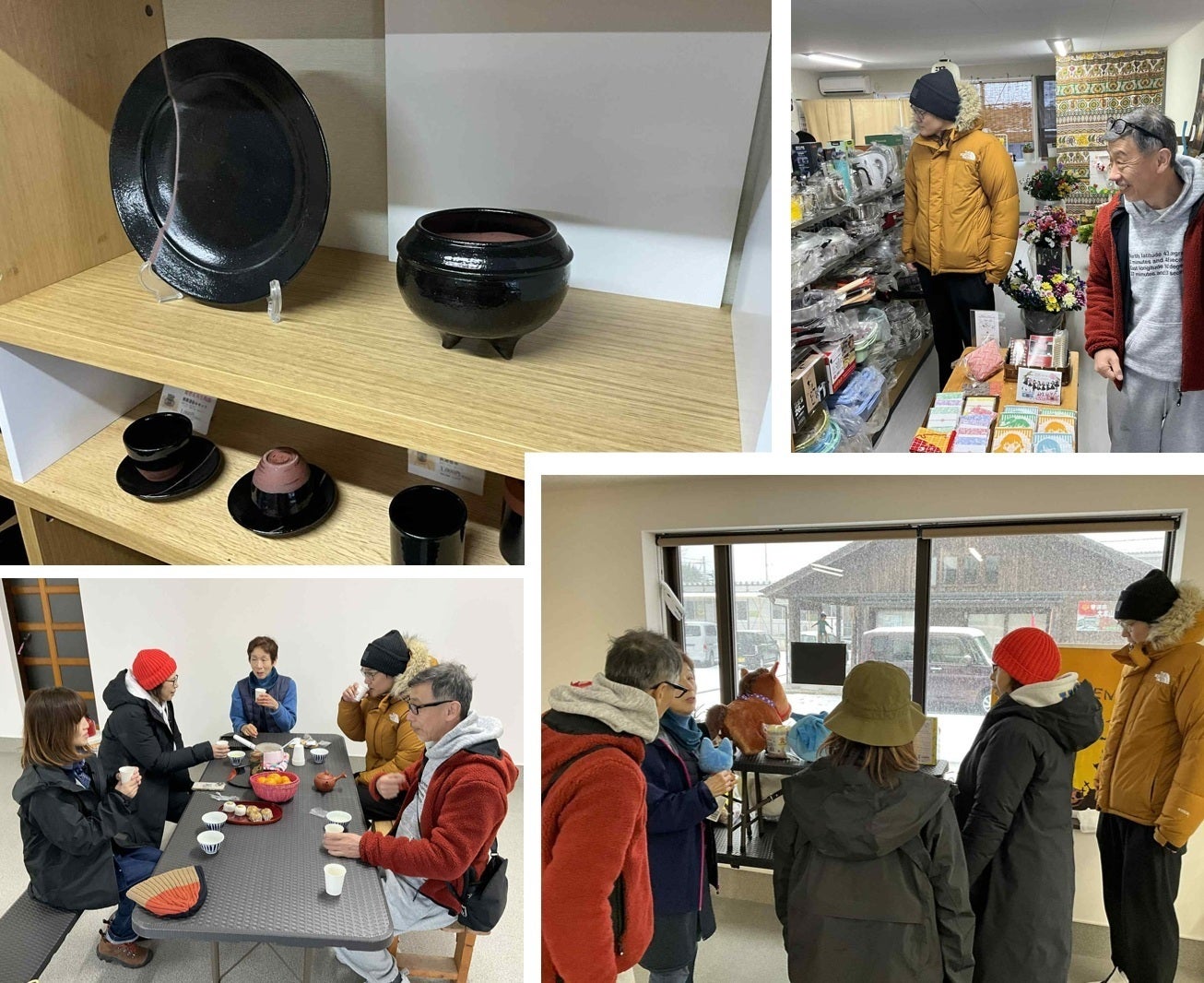 外は雪景色…、温かいお茶と大人気のお饅頭にホッと一息